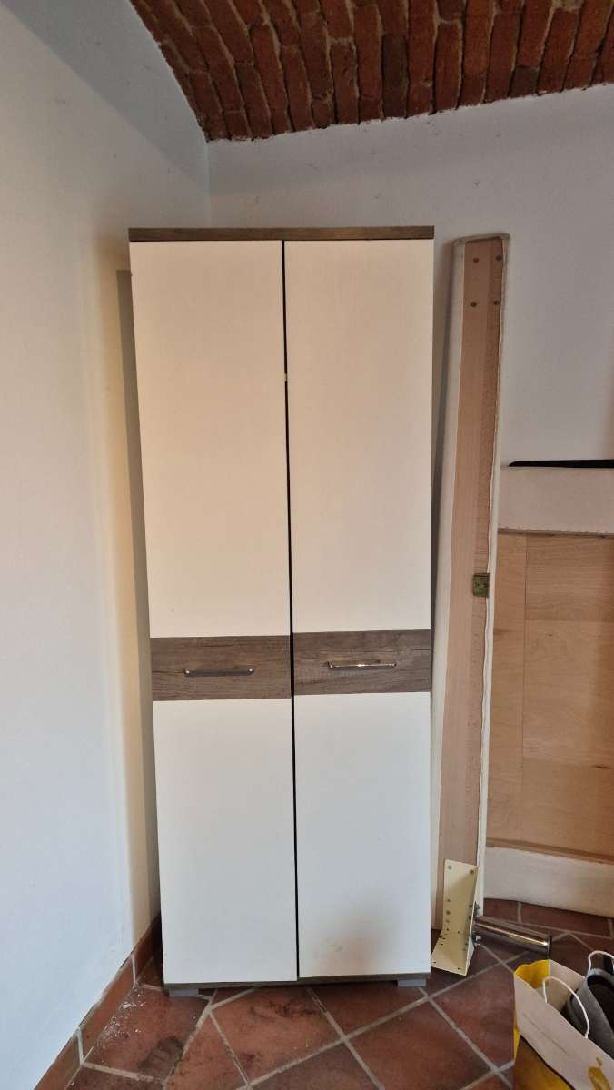 1,90 m hoch, 68,5 cm breit, 35 cm tief Hat innen unten ein paar Flecken, sieht aber sonst noch ok aus. Für Garage, Werkstatt oder halt zum Putzen. Nix Massives. Nur Selbstabholung