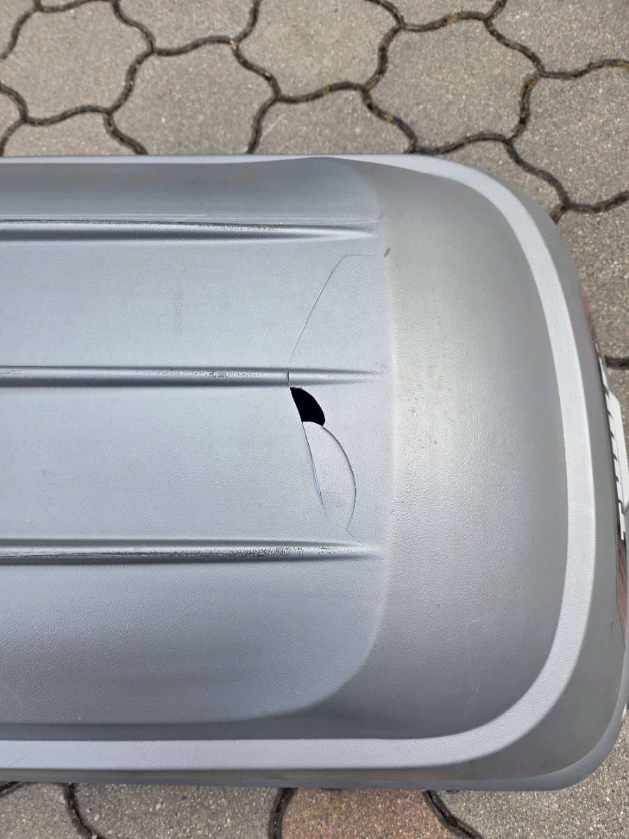 Länge: 225cm max Zuladung: 50kg Inkl. Riemen und Befestigung (universal) Leider ist Hinten ein kleines Loch/Riss - siehe Foto Sonst voll funktionsfähig (Schloss, Montage,...)