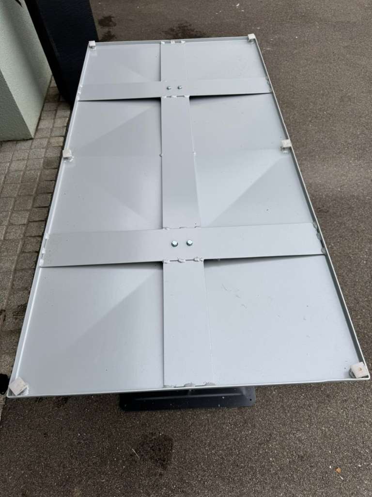 Tischfuß für Tischplatte abzugeben. Unsere Tischplatte hatte 100x200 cm und hielt sehr gut. Auf Wunsch Zusatzplatte noch abzugeben (Unterbau für Holz)