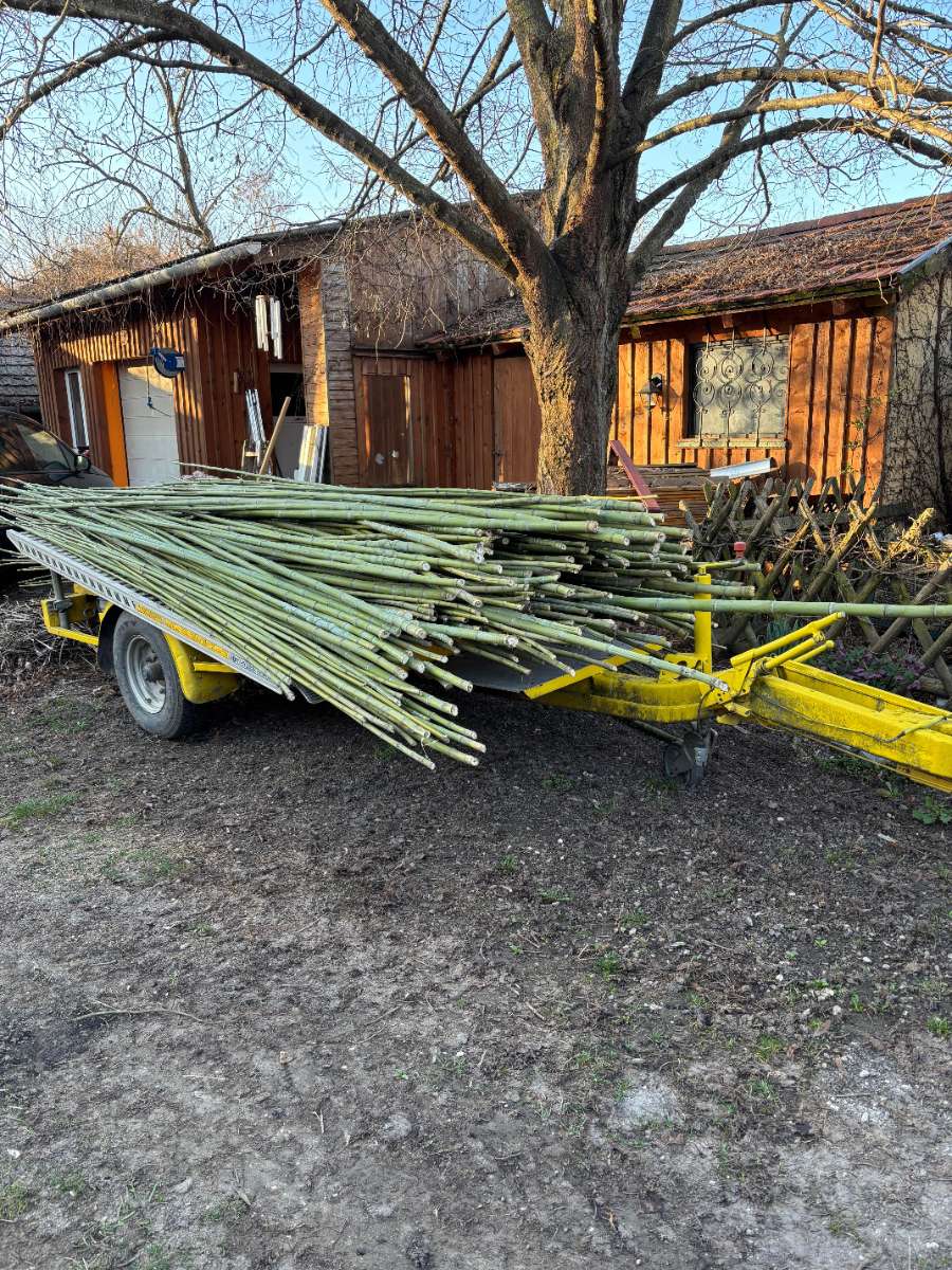 Frisch geschnittene und entastete Bambusstangen abzugeben. Durchschnittlich 4-5 m lang, einige auch länger und ca 2-4 cm dick. Bei Bedarf mehrere hundert Stück. Abzuholen bei mir am Hof in Ungarn nahe der österreichischen Grenze. Zum Kürzen steht...