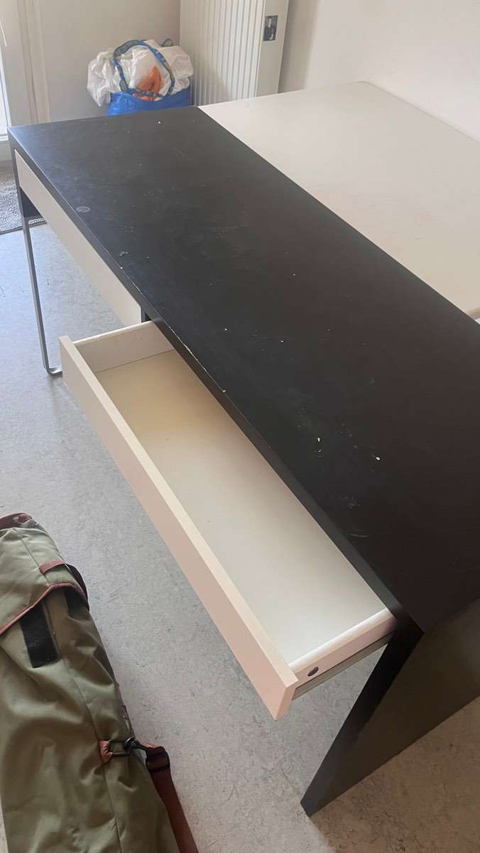 Verschenke Schreibtisch mit zwei Laden 142cm breit, 50cm tief, 75cm hoch