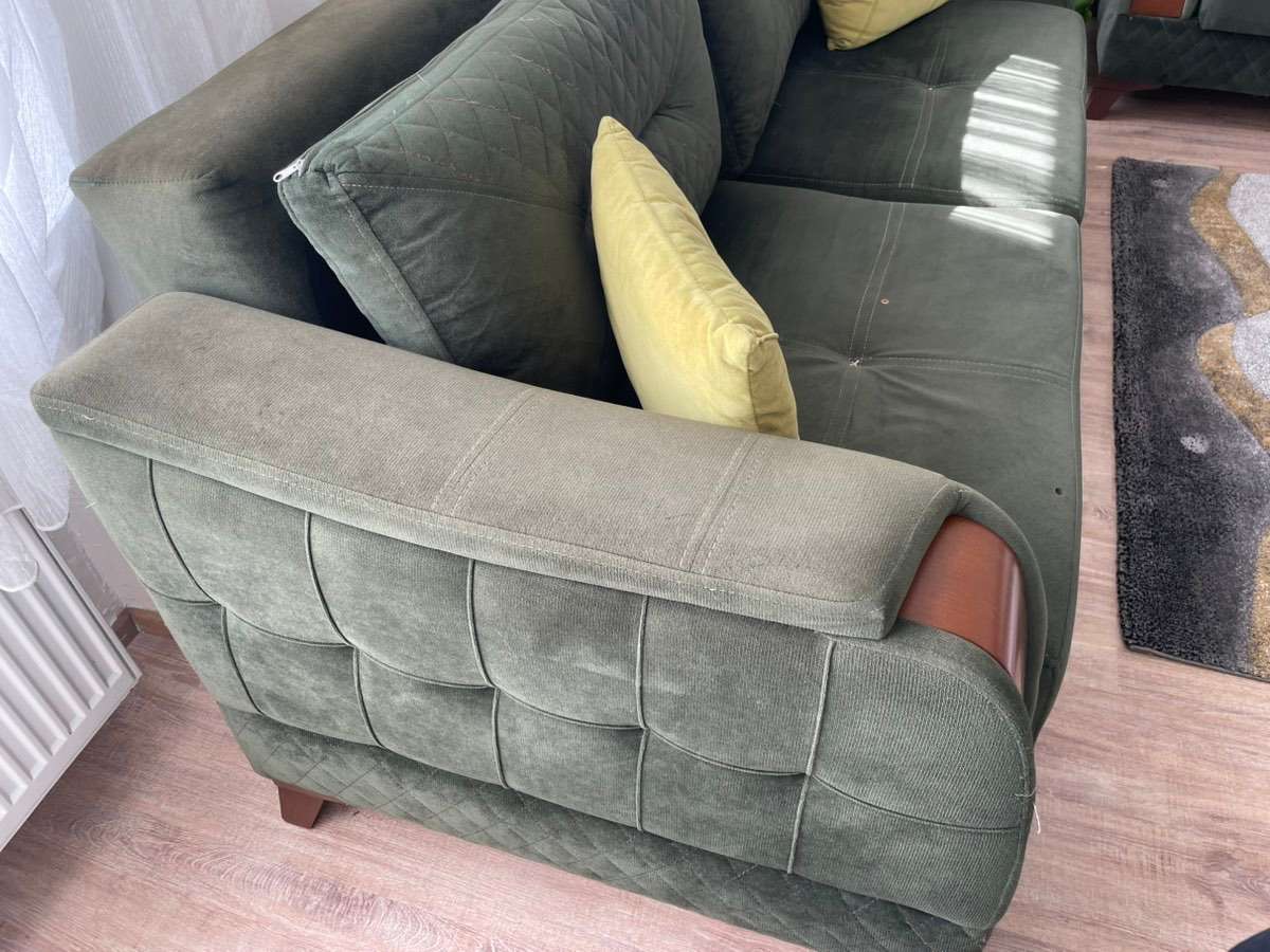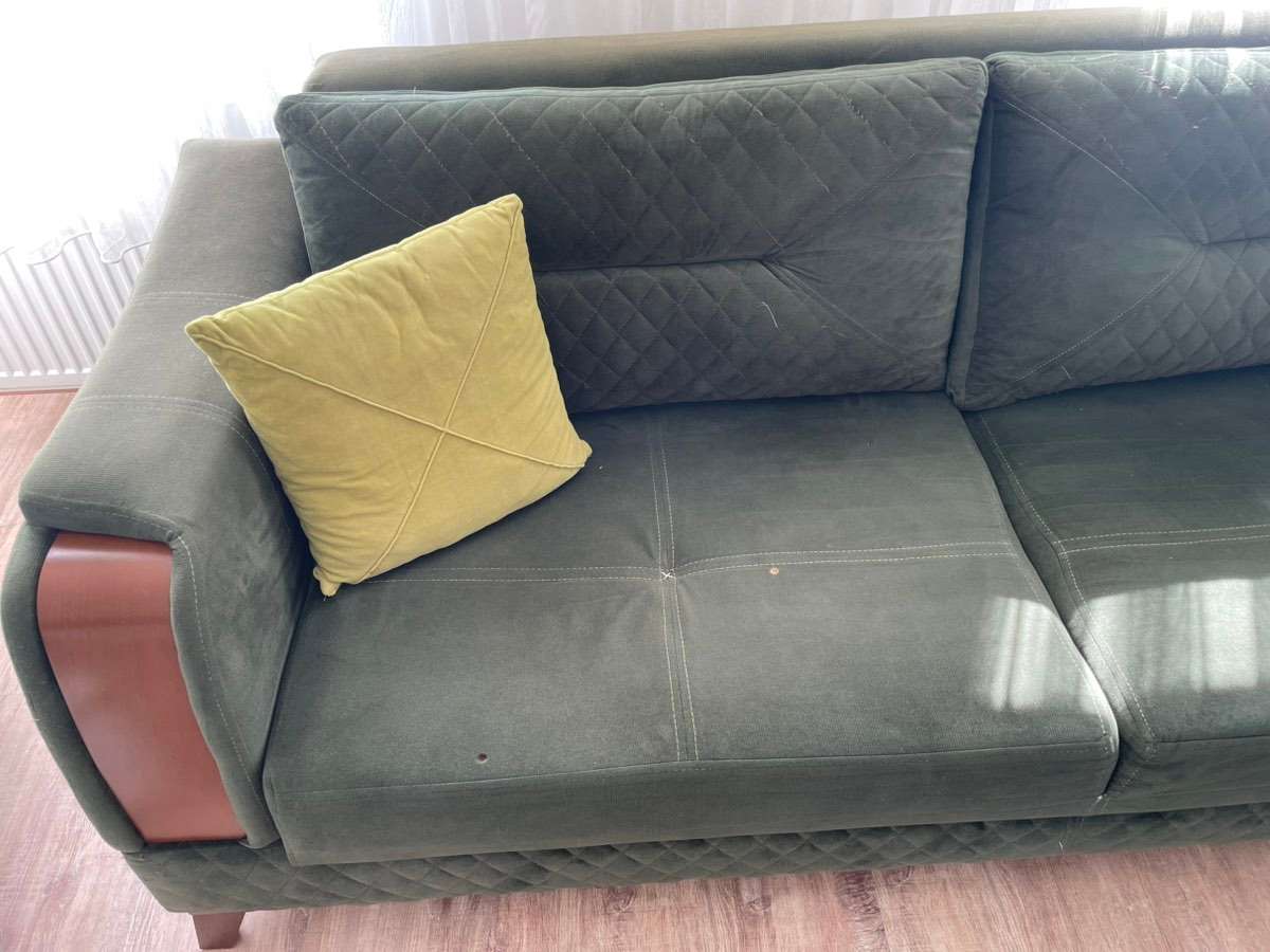 Die Couch auf dem Bild hat brandflecken es gibt noch ein Sofa das genau gleich aussieht bei der anderen ist das sofa in der mitte etwas gebrochen aber ist gut funktionsfähig