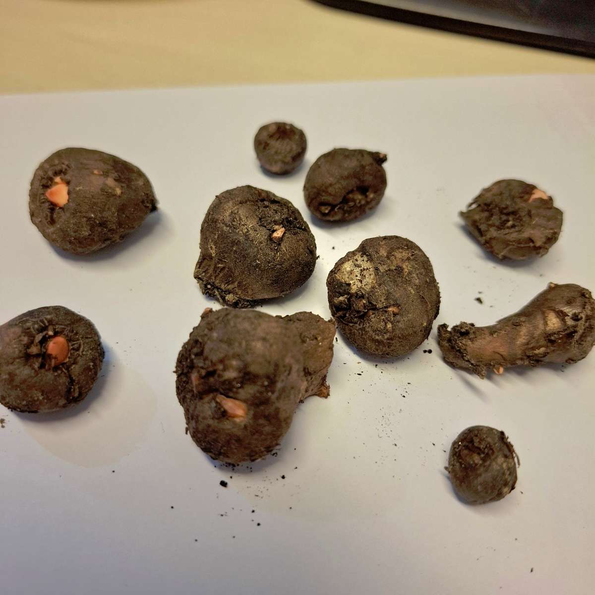 Alle (Baby-) Knollen auf dem Bild wurden im Herbst 2025 "geerntet". Laut EU-Recht handelt es sich hier um einen Privatverkauf, daher Garantie, Gewährleistung und Rücknahme ausgeschlossen