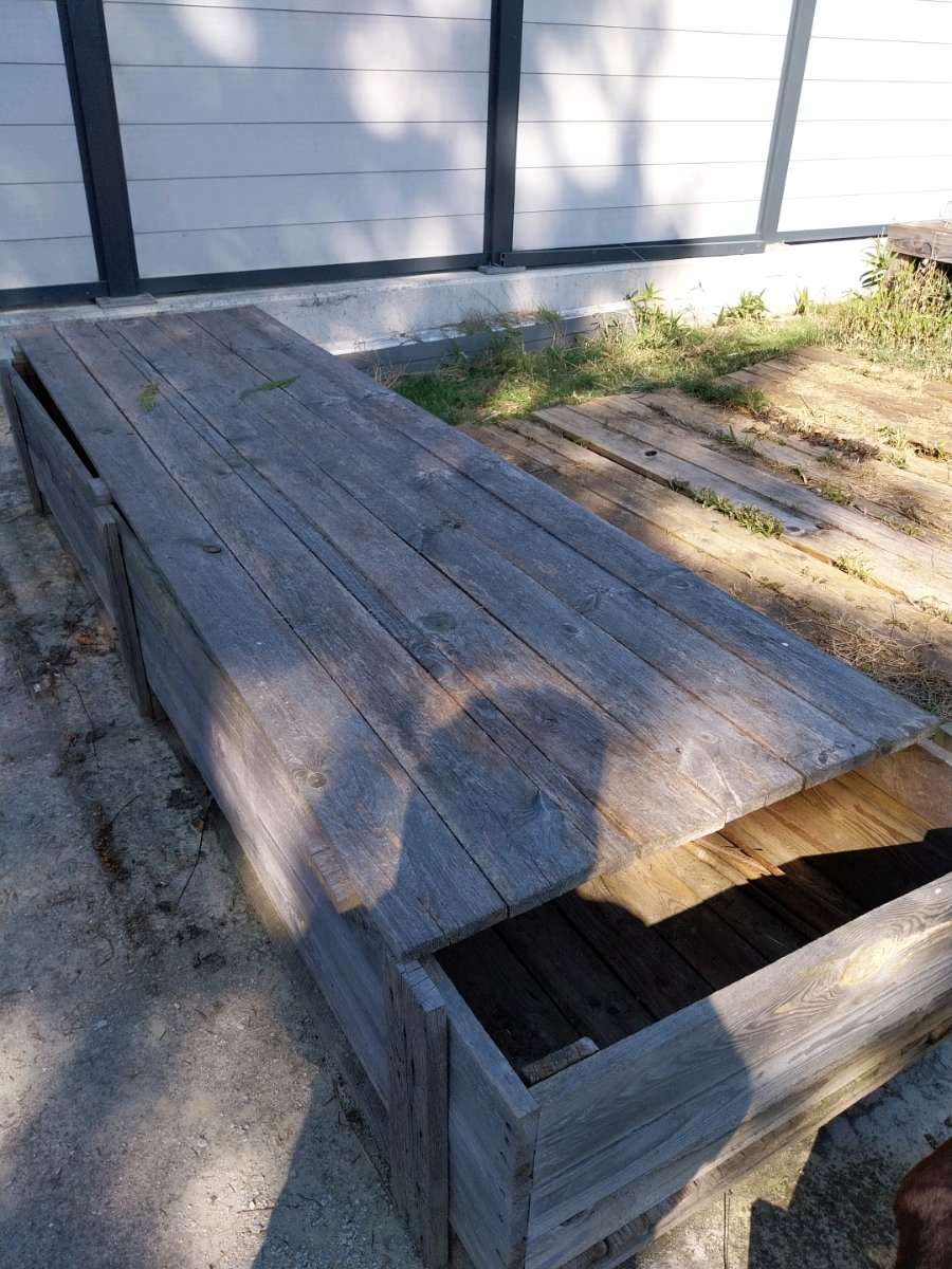 Kiste, ca 2,30 cm, x 70 cm, x 50cm Sie ist erhöht, um von unten nicht nass zu werden und zu modern. Ein Deckel ist auch dabei. Sehr stabil Zur: Aufbewahrung verschiedener Dinge, als Gehege für Meerschweinchen, Hasen. Wachteln, Schildkröten, als Hochbeet,...