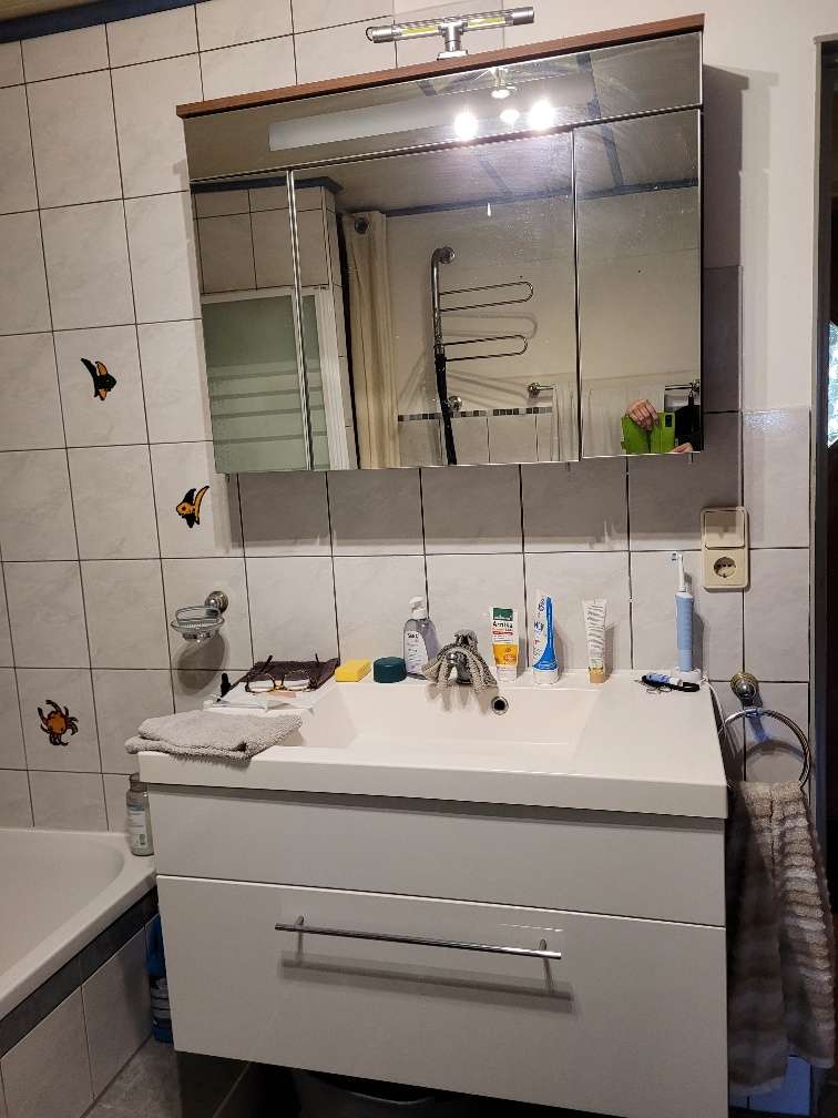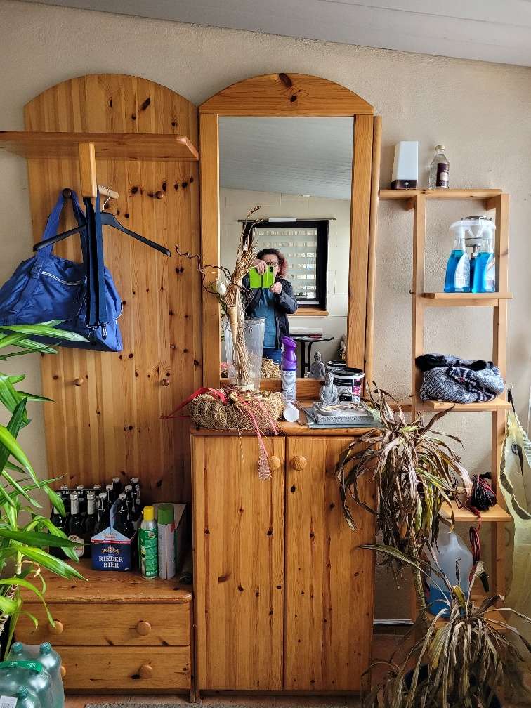 verschiedene Garderobenelemente, Waschtisch und Badezimmerschrank, Massivholz-Wohnwand Alles nur gegen Selbstabholung und Selbstabbau zu verschenken Laut Bildern und ohne Dekoelemente Keine Gewähr oder Garantie Abholung bis Ende März!! Badezimmerschränke...