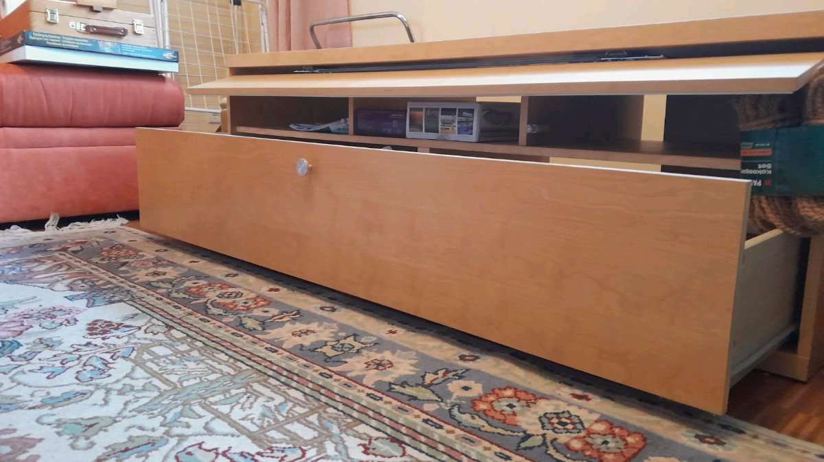 Fernseh-Sideboard in Eiche wegen Umgestaltung des Raumes abzugeben. 144 x 60 x 48 cm BxTxH. Unbeschädigt! Große Lade geteilt, über der Lade eine Klappe mit drei Fächer. Mit Ausnehmung für diverse Kabel. Abholung ab Donnerstag 19.3.26 möglich Keine...