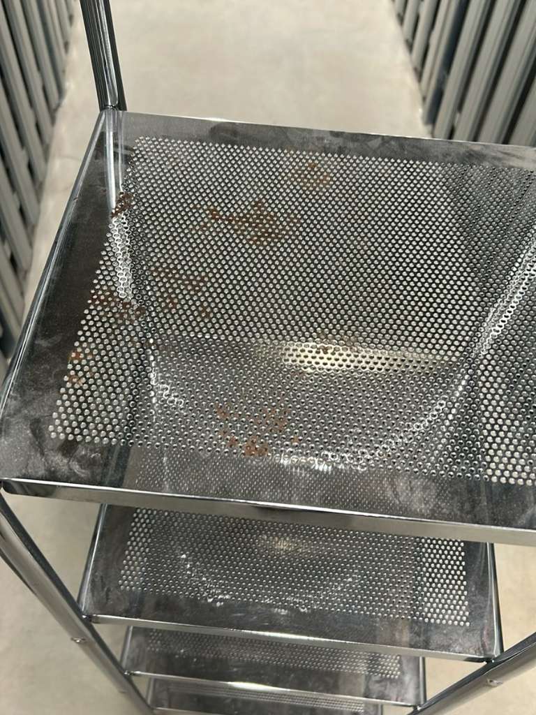 Metallregal mit den Maßen 37x33x150cm zwei Böden haben leichte Rostflecken (siehe Bilder) Privatverkauf, keine Gewährleistung.