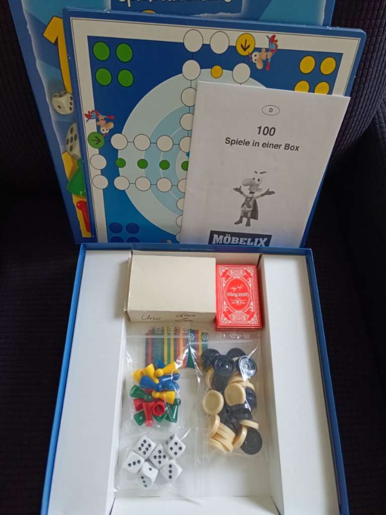Wie am Foto ersichtlich. Zusätzlich sind UNO Karten dabei.