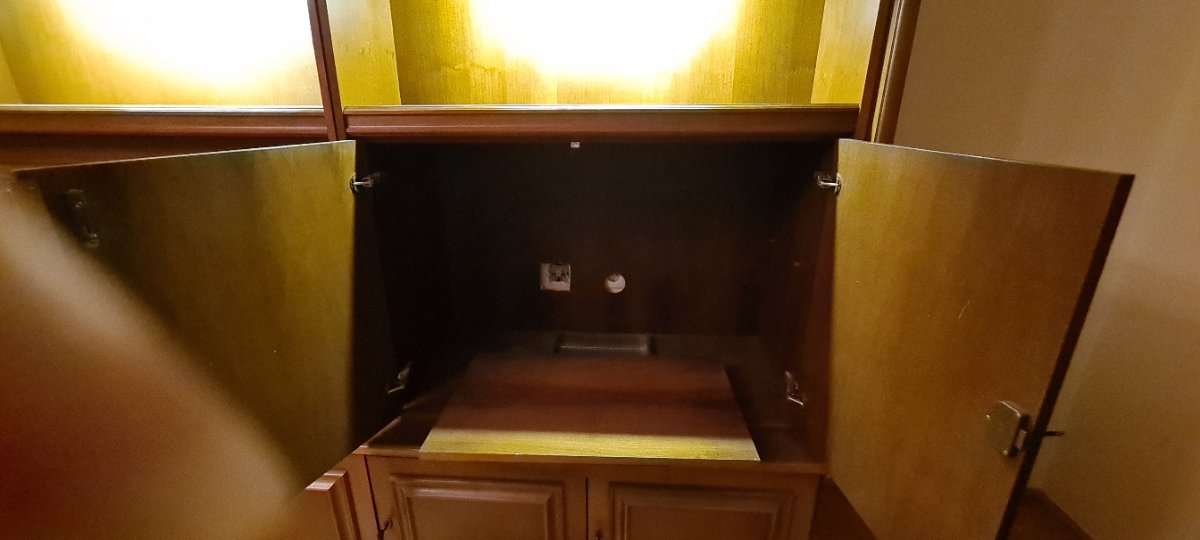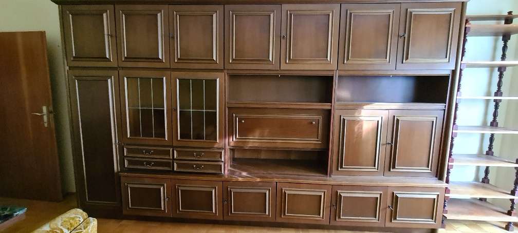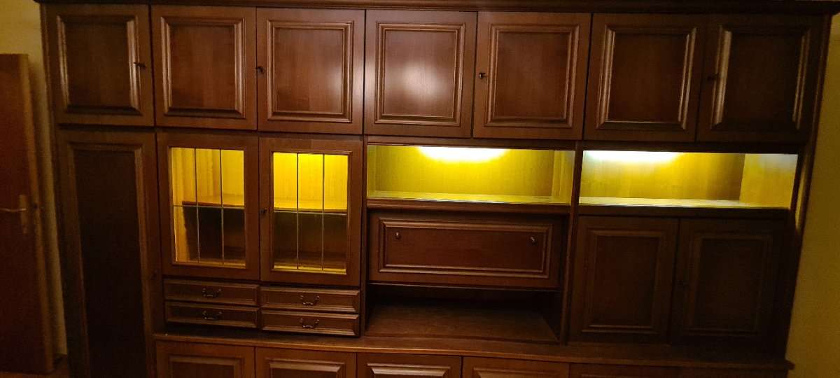 Gut erhaltener Wohnzimmerschrank. Holzfuniert könnte deshalb auch in einer anderen Farbe bemalt werden. Fächer ud Bar mit Beleuchtung. Bei Selbstabholung und Selbstmontage gratis zu verschenken. Größe: 360cm , 215cm hoch, ca. 50cm tief. Auch ist ein...