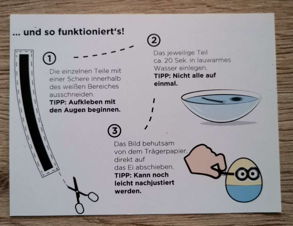 Verschiedene Sticker Mit den Minion Sticker kann man Eier bekleben mit Anleitung