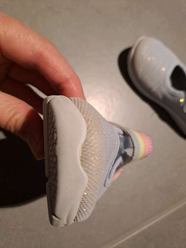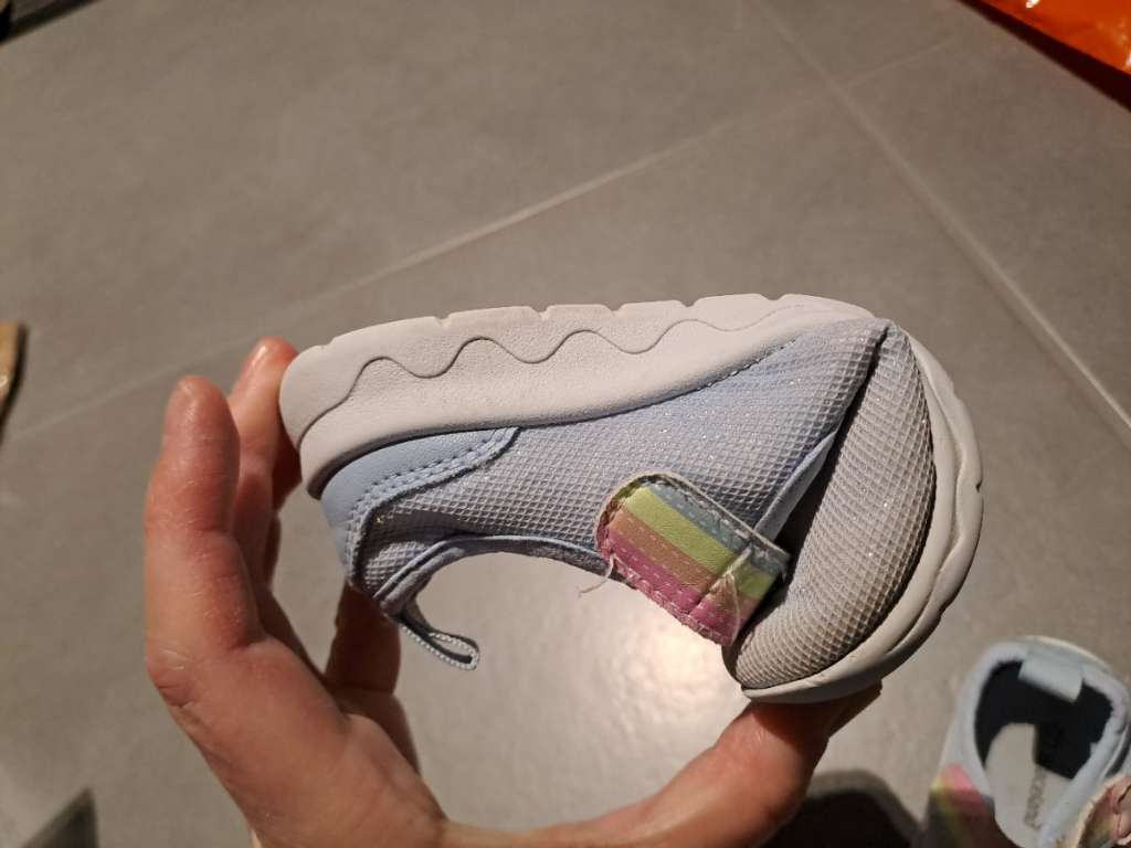 Vorne an der Spitze fehlt ein kleiner Teil vom Gummi - siehe Foto. Sehr biegsame Sohle.