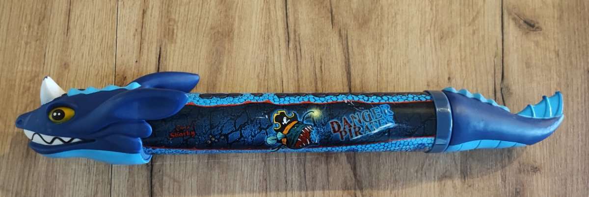 Verschenke eine Wasserspritzistole in Hai/Wasserschlangenoptik. Sollte noch gut funktionieren. Bitte beachten Sie noch meine anderen Anzeigen!