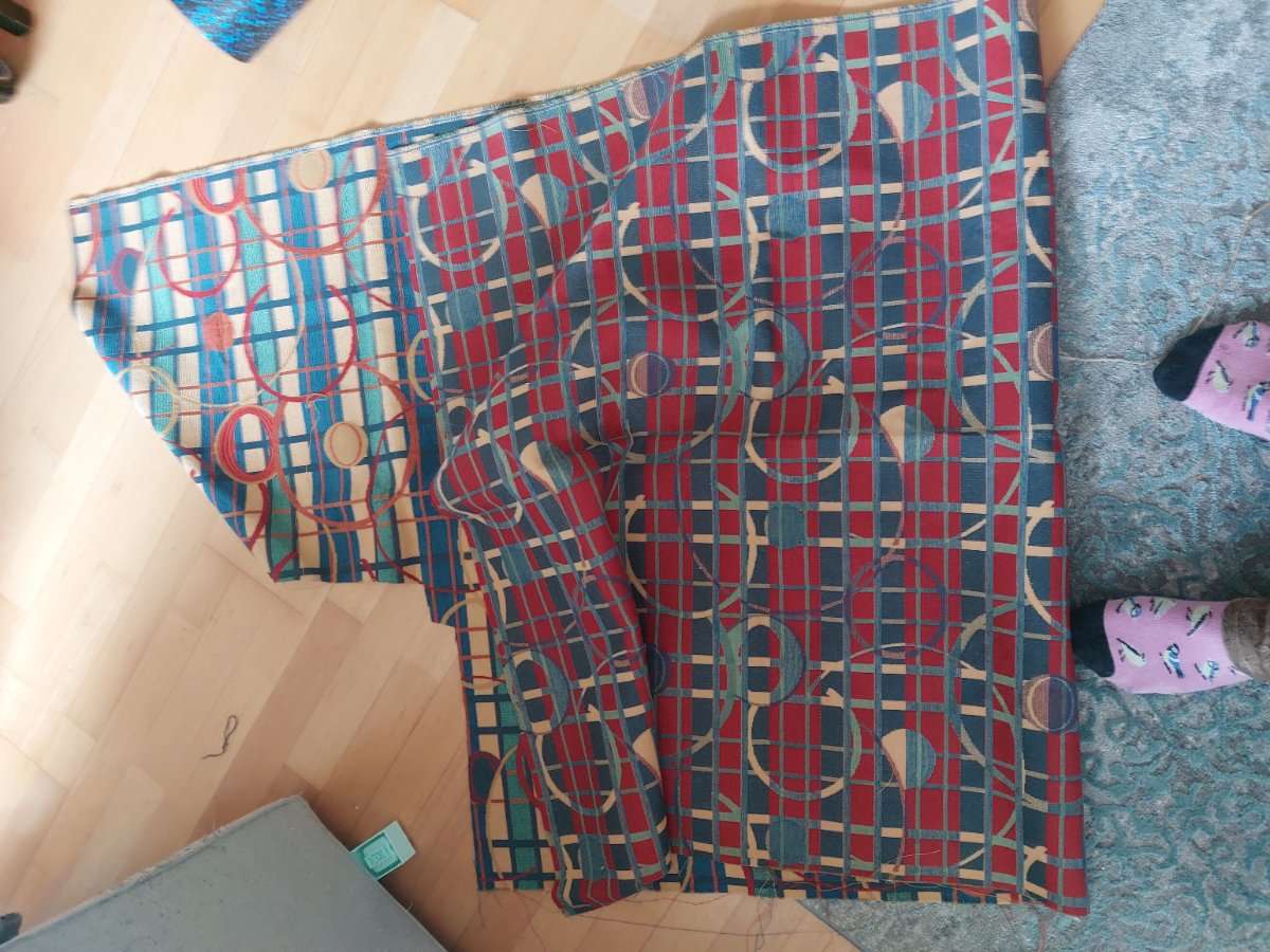 Geschenkt bekommen, brauche ihn nicht. Waren Reste von Polsterbezug für eine Bank. Reicht für mehrere Sesselpölster o.ä, würde auch für Taschen passen.