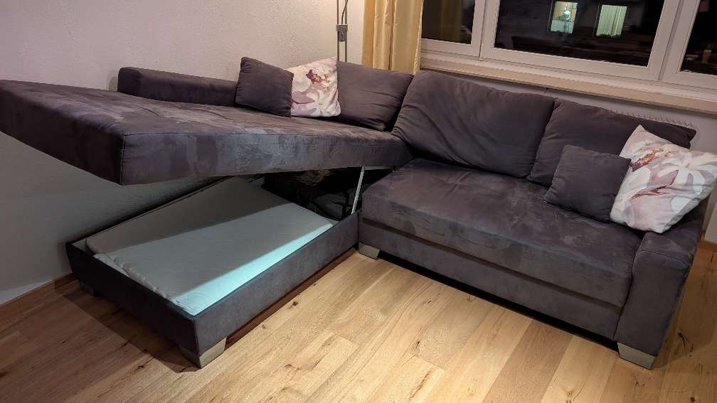Couch mit Bettfunktion und Bettkasten Incl. passenden Topper und Edelstahlfüßen zu verschenken! Breite ca. 2,5 m, Tiefe ca. 2,05 m Nur Selbstabholung in St. Johann in Tirol am Wochenende!