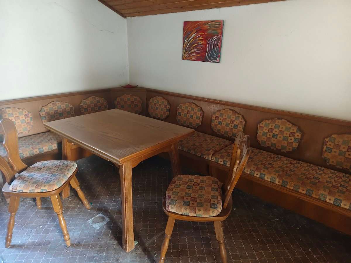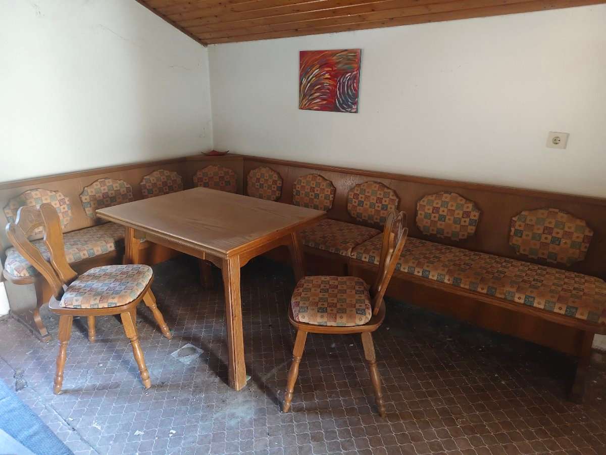 Essecke mit Tisch und 3 Sessel abzugeben Maße: Länge 302 Länge kurze Seite 183 Höhe 88 Tisch 110 x 75 Selbstabholung und Selbstabbau