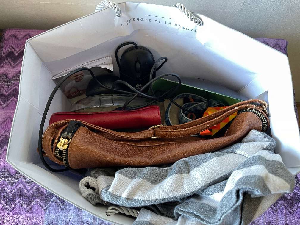 eine Tasche mit verschiedensten Dingen bei Selbstabholung zu verschenken