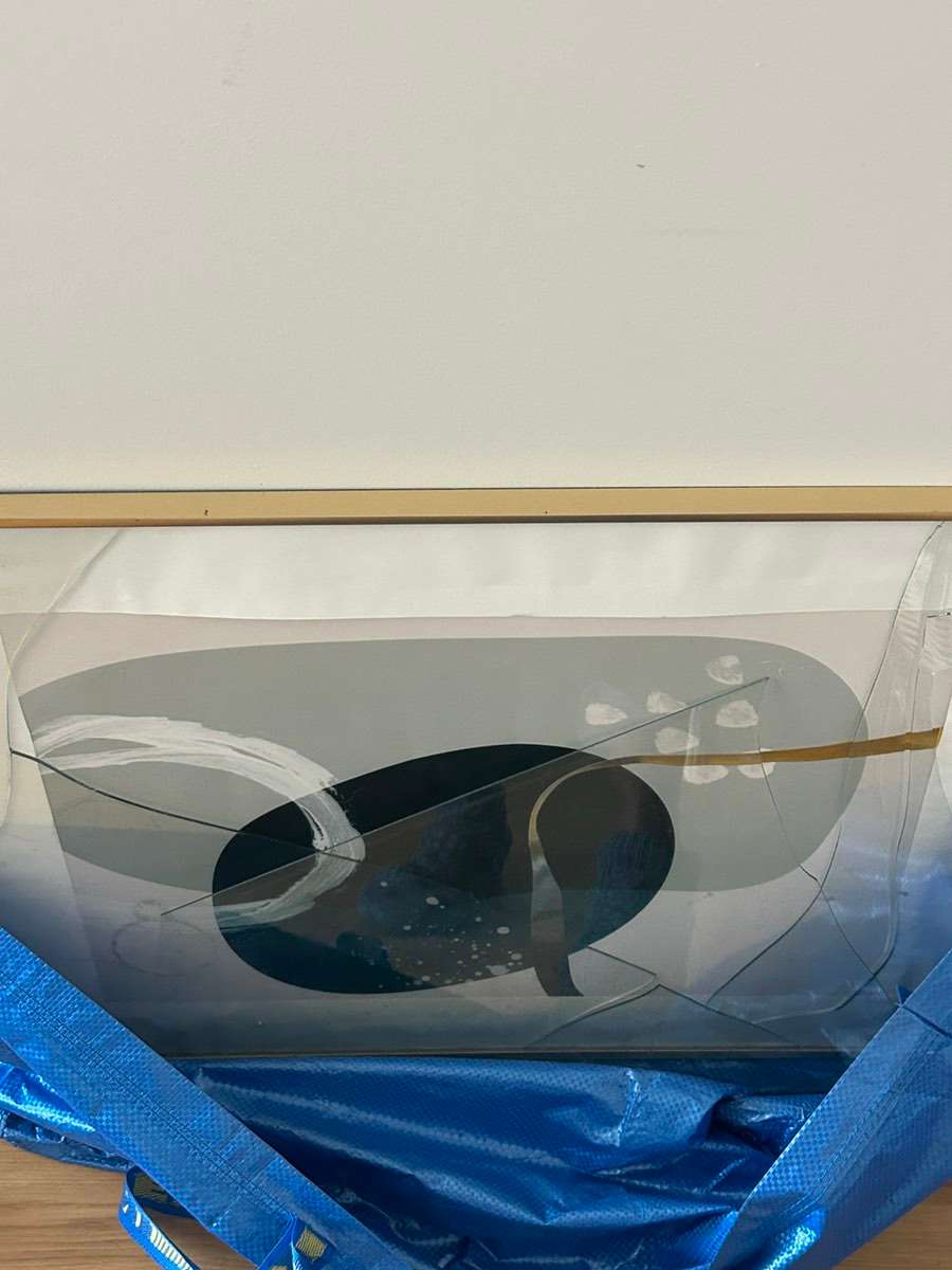 The glass is broken but the rest of the frame is in quite good condition. Comes with the picture