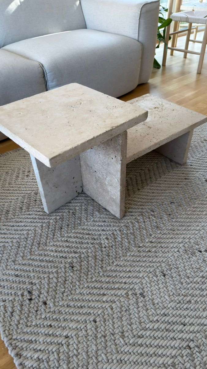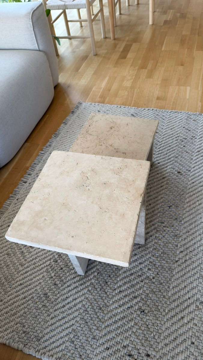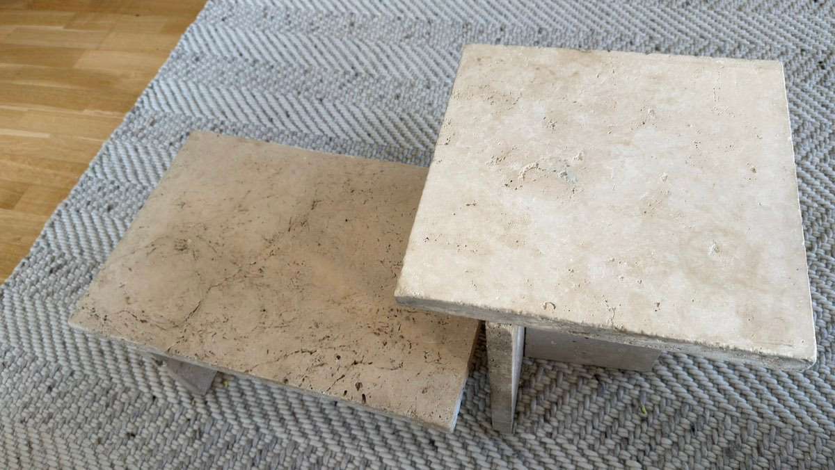Verschenke zwei kleine Couchtische aus Stein. Die Tische wurden selbst gebaut aus Steinplatten (Baumarkt) und mit Spezialkleber stabil verbunden. Sehr robust und schwer – ideal z. B. als Couchtisch, Beistelltisch oder für Balkon / Garten. Gebrauchter...