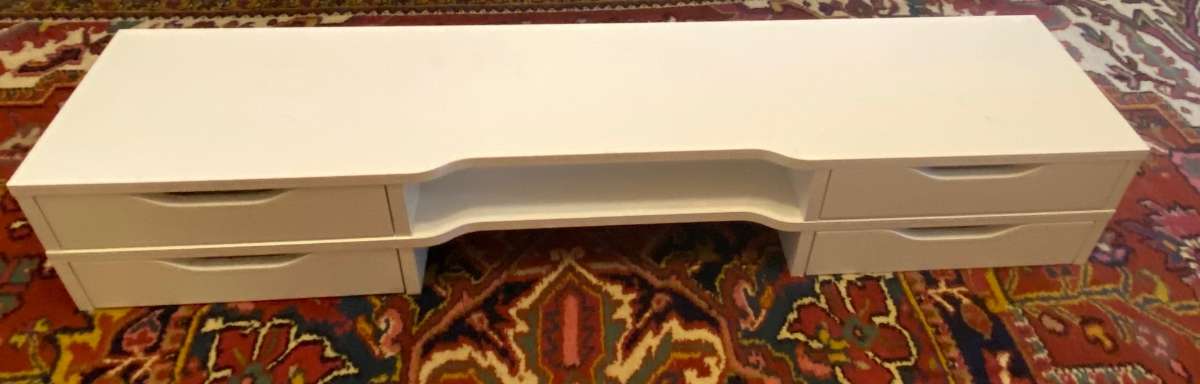 2 Ikea Alex Schreibtischaufsatz Monitorständer mit 4 Schubladen aufeinandergeleimt. Gebraucht. 120x27x20 cm Nichtraucher Haushalt, keine Haustiere Abzuholen bei Quartier Belvedere