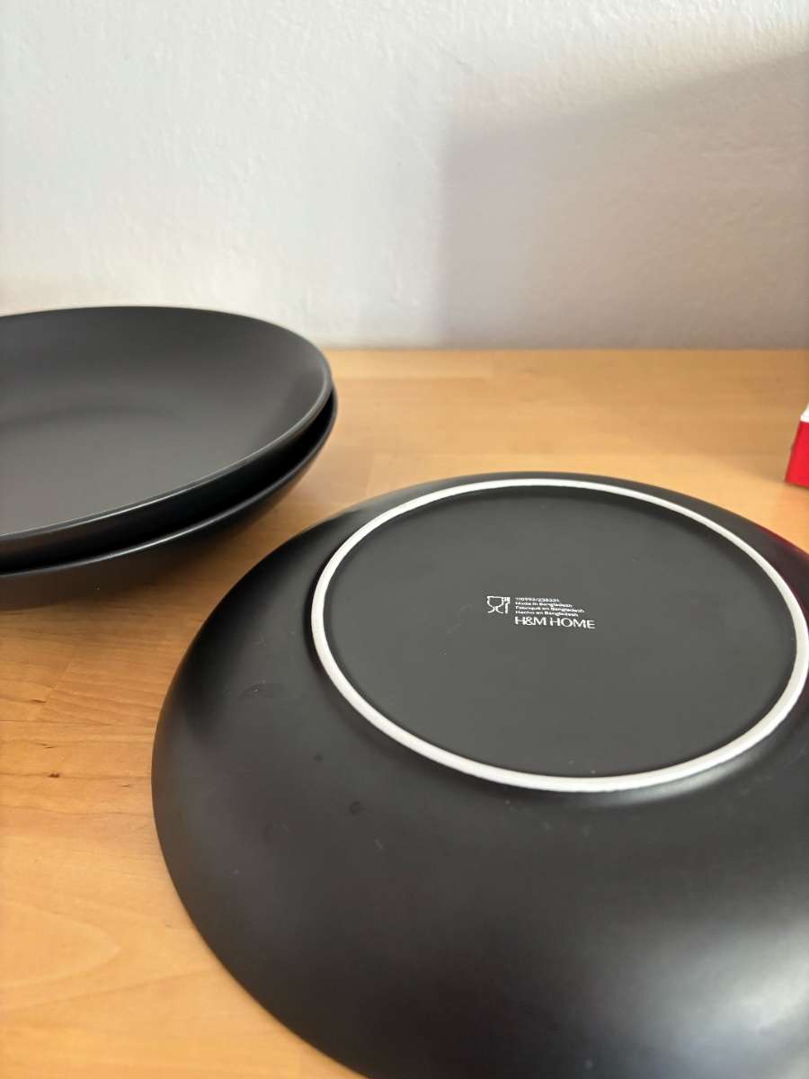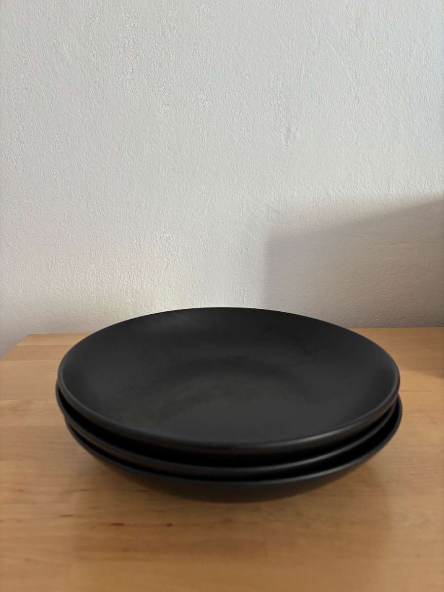 Tiefe Teller, 3 Stück, schwarz, matt. Marke: H&M Home. Wichtig : Abgabe nur bei Selbstabholung am Mittwoch, den 25.03. 12-14 Uhr möglich (1030 Wien, Fasangasse). Andere Vorschläge zwecks Abholung müssen leider meinerseits ignoriert werden.