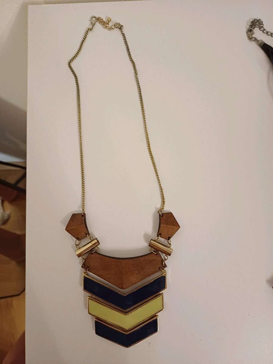 Goldkette mit Holz, dunkelblau und mintfarbenem Anhänger Gerne auch in Frankenmarkt, Vöcklamarkt oder Ried in der Riedmark abzuholen