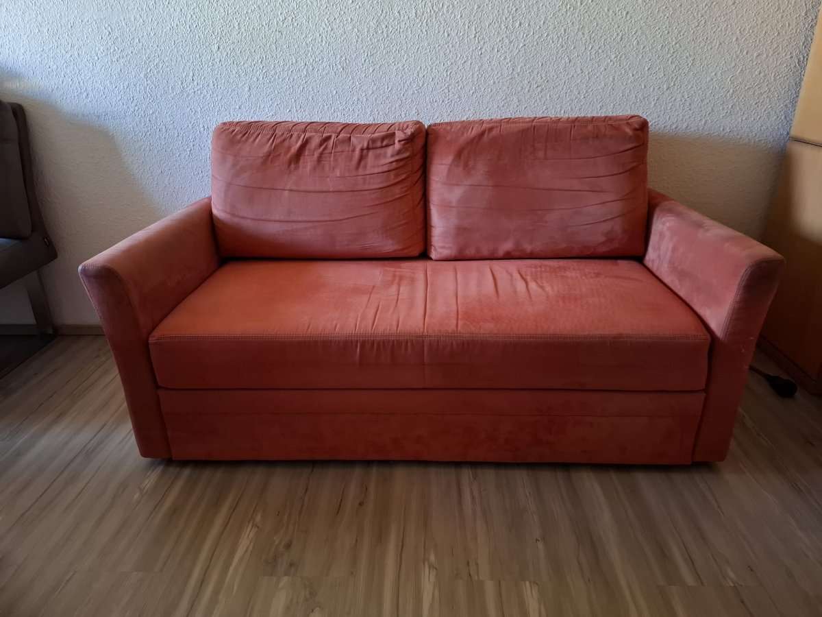 Gebrauchte ausziehbare 2er Couch gegen Selbstabholung zu verschenken. Maße: 167 x 82 cm, Sitzhöhe 43 cm Liegefläche: 145 x 135 cm