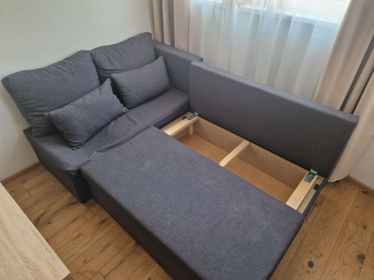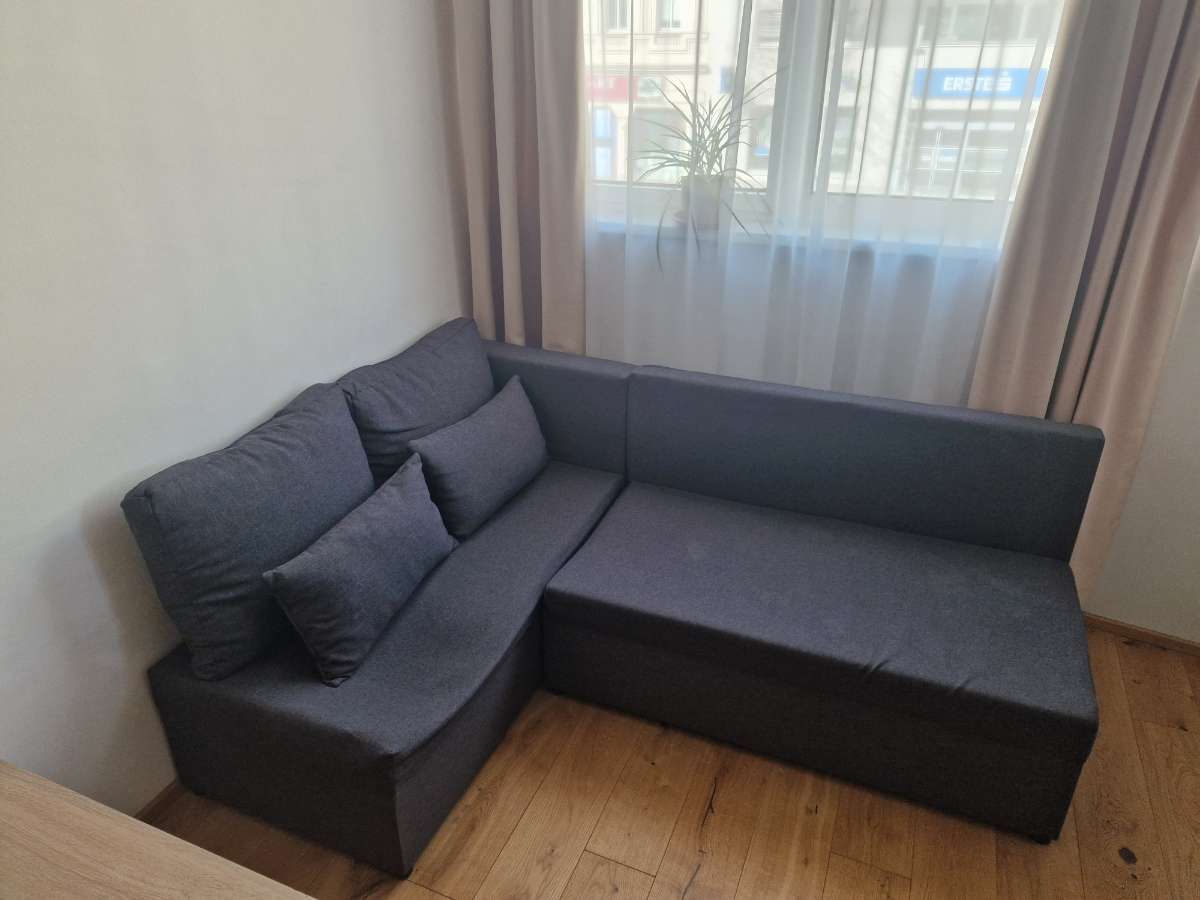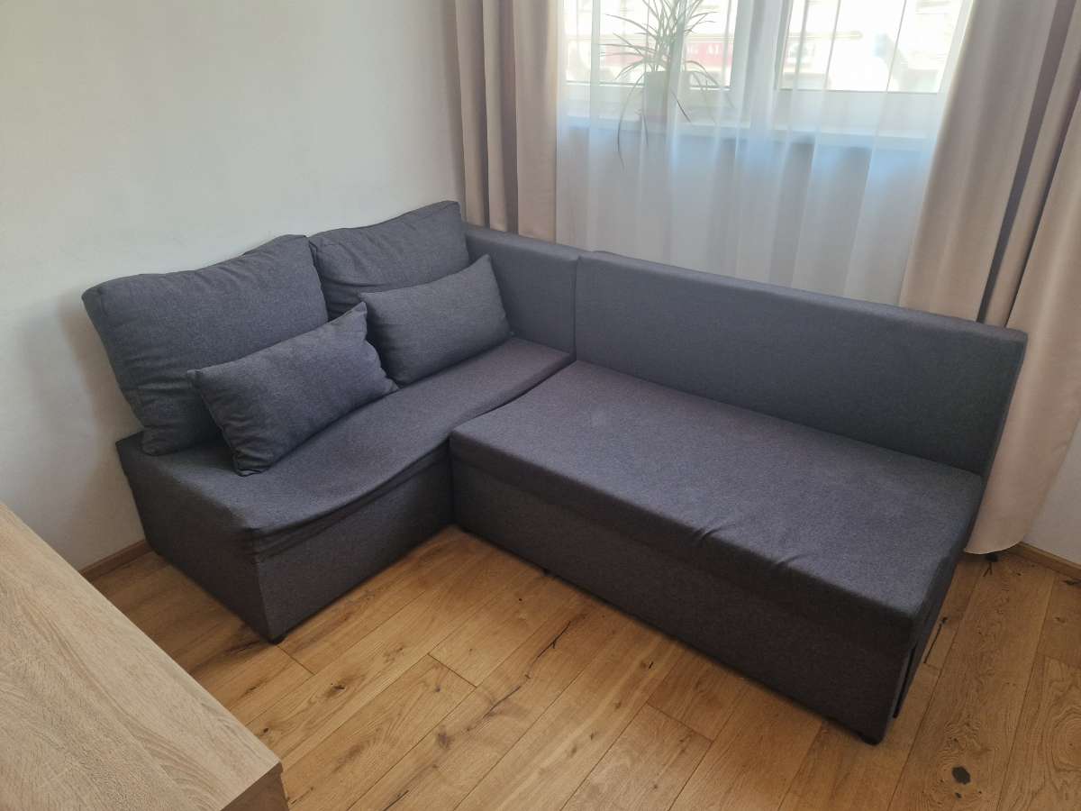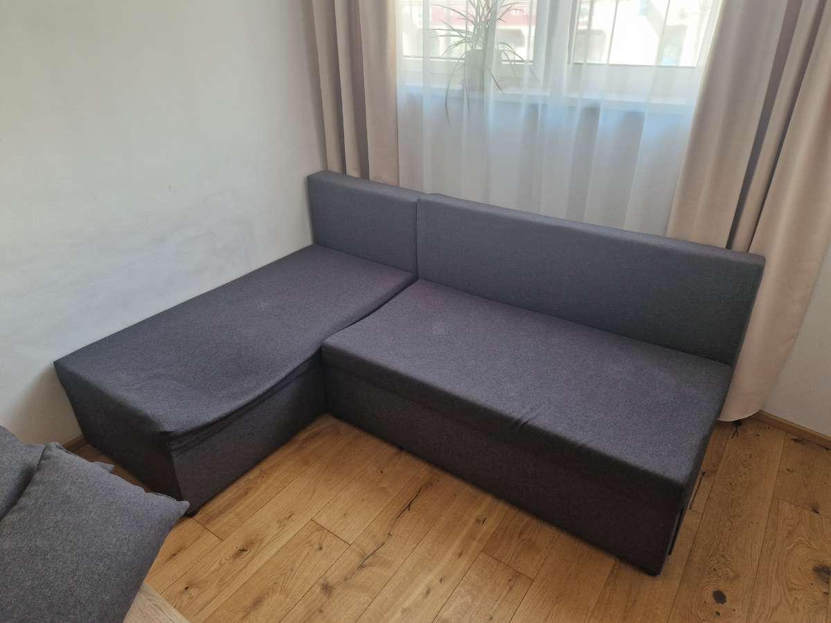 Graue Ecksofa mit Schlaffunktion zu verschenken. Gekauft neu in Juli 2024. Sauberes, nichtraucherhaushalt. Alle Defekte auf den Fotos. Selbstabholung in Wien, 22. Bezirk ab heute!
