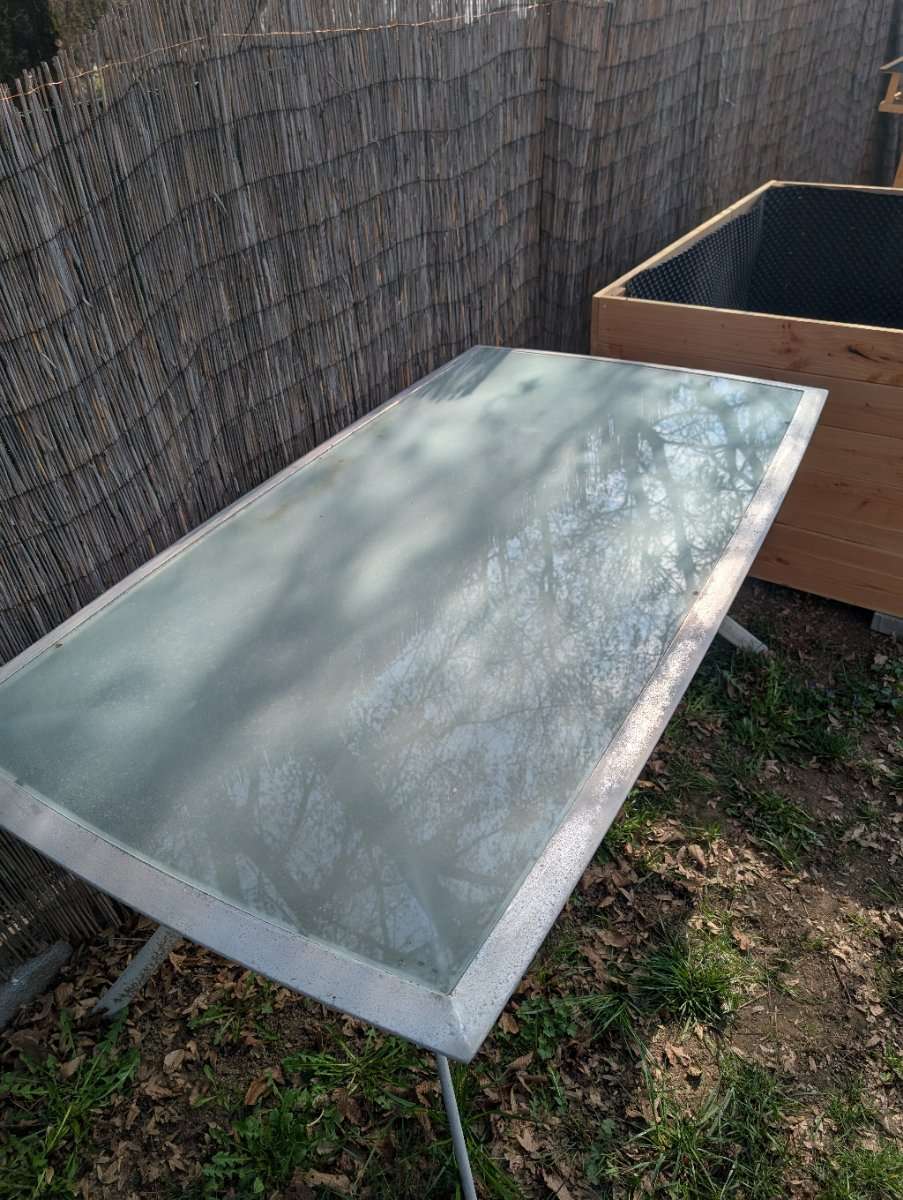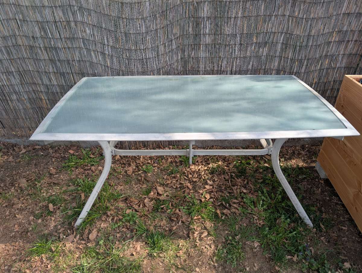Metall Gartentisch mit Milchglasplatte Maße: Länge ca 165cm Breite ca 90cm Höhe ca 72cm Glasplatte lässt sich zum Transport entnehmen