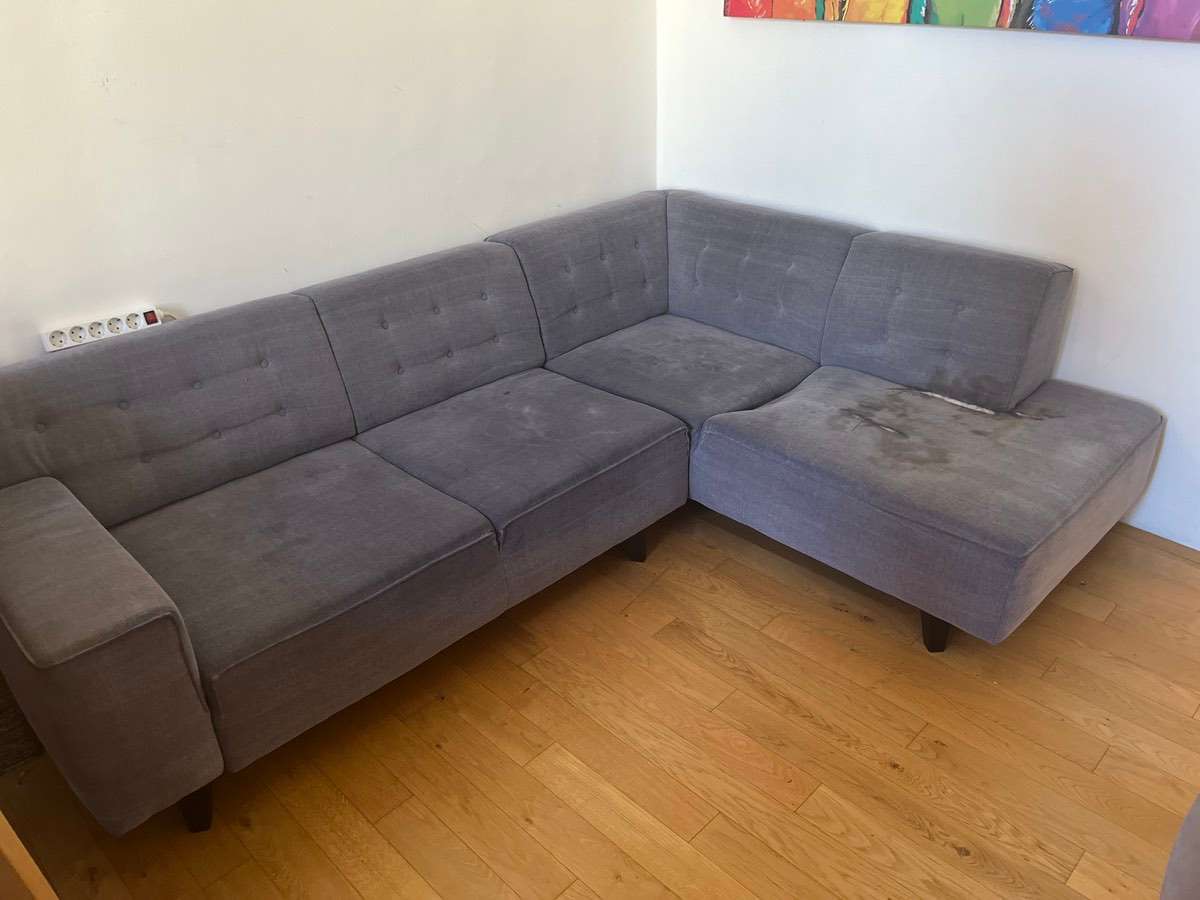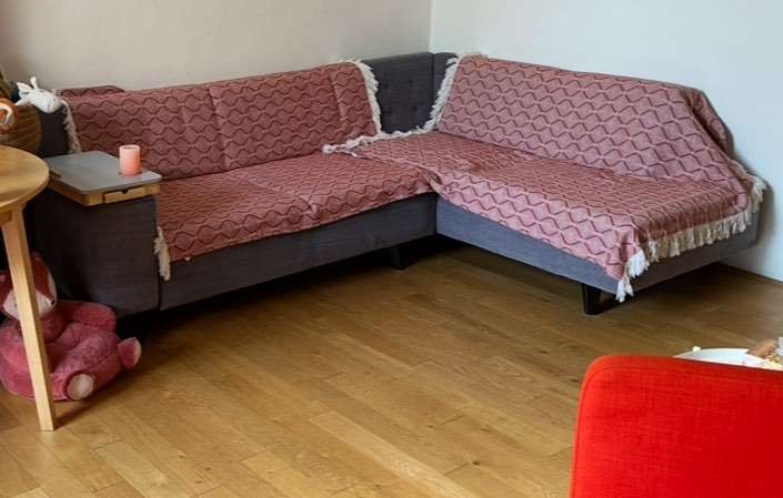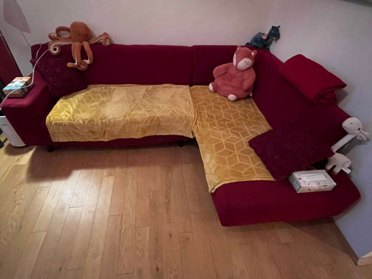 inklusive neuem roten Bezug - Längsseite ausziehbar: bequeme Liegemöglichkeit für 1 Person - ideales Gästesofa - Sitzgelegenheit für gesellige Runden Der Original Zeug ist beschädigt, mit dem neuen roten Bezug sieht die Couch wie neu aus.