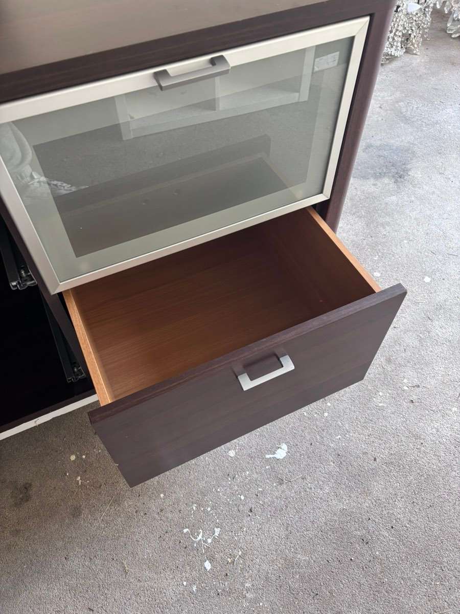 Verschenke eine ältere Vintage-Kommode, vermutlich aus den 60er/70er Jahren. Das Möbelstück dürfte ursprünglich als HiFi- bzw. Plattenspielerschrank verwendet worden sein. Oben befindet sich eine Kabelöffnung, die typisch für Plattenspieler oder...