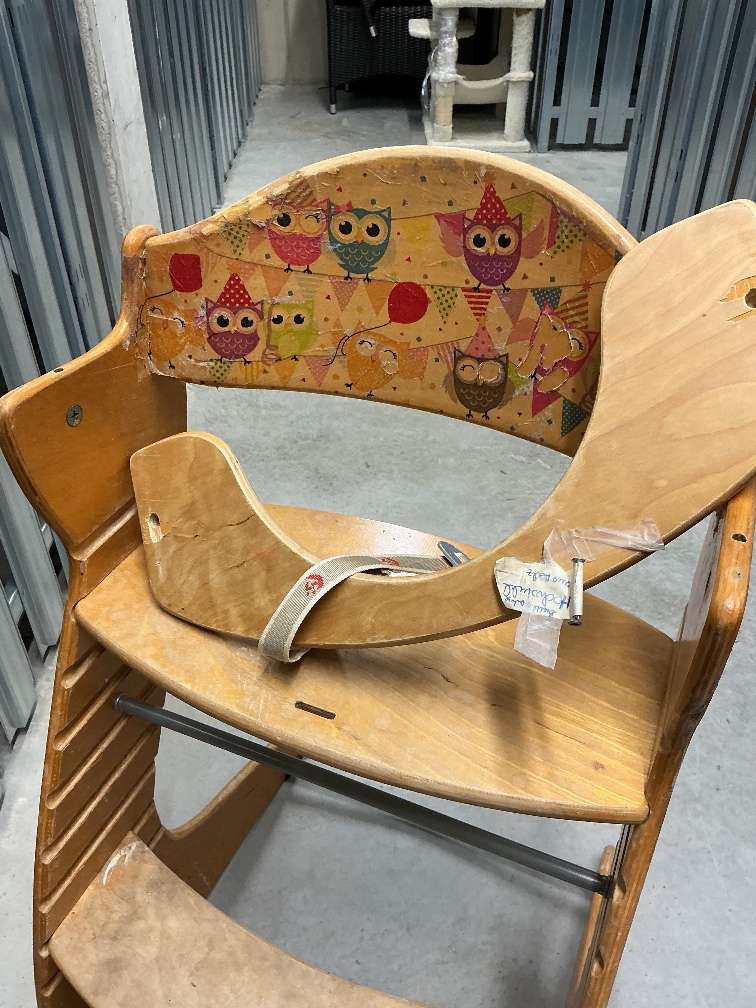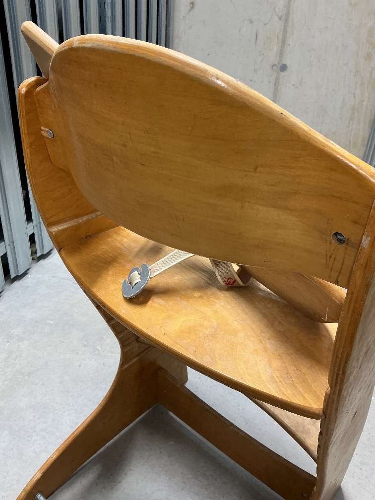 Kinderhochstuhl aus Holz in brauner Farbe. Hat ein paar Gebrauchsspuren bzw. kleine Makel (siehe Foto). Bei Interesse gerne melden. Keine Gewährleistung.