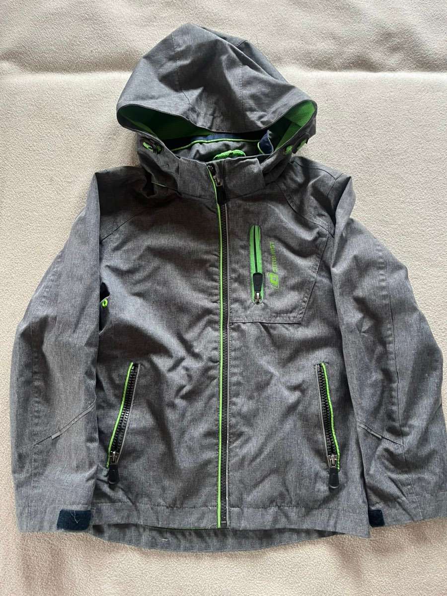 Verschenke gern getragene Übergangsjacke von Outburst, Gr. 128, mit Tragespuren, an beiden Ärmel ein kleines Stück Naht aufgegangen, lässt sich reparieren, Selbstabholung