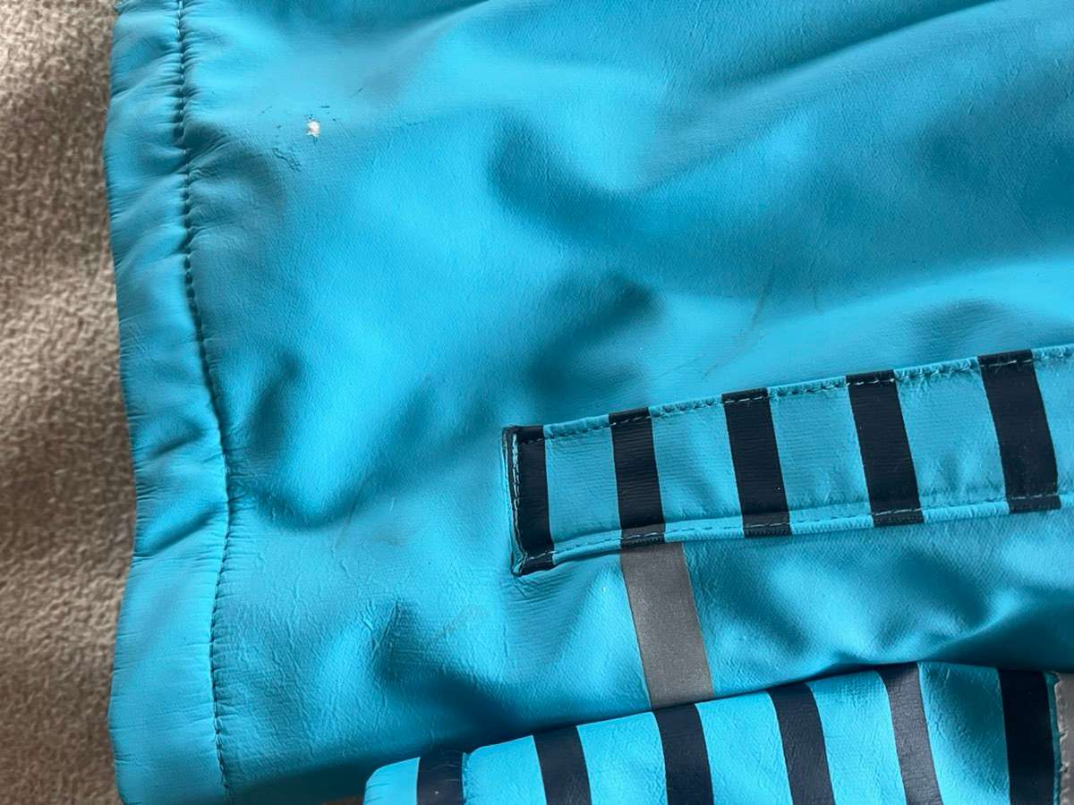 Verschenke warme Gatschjacke/Regenjacke von impidimpi, Beschichtung hat schon Risse, siehe Fotos, Nichtraucherhaushalt, Selbstabholung.