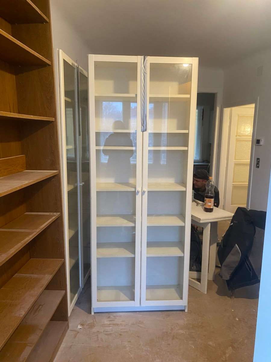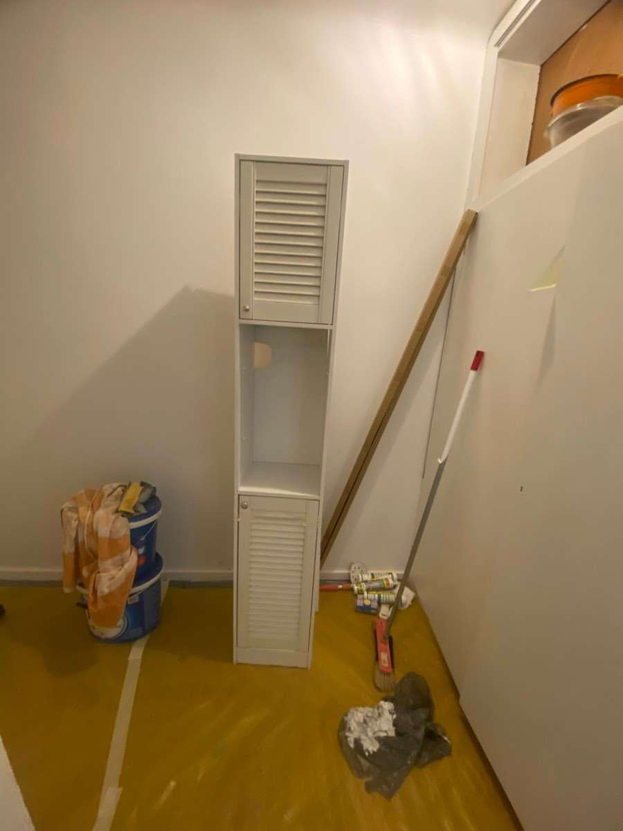 , braunes Regal/ 240cm hoch. Und 2 Vitrinen, und schmaler Badezimmer Schrank