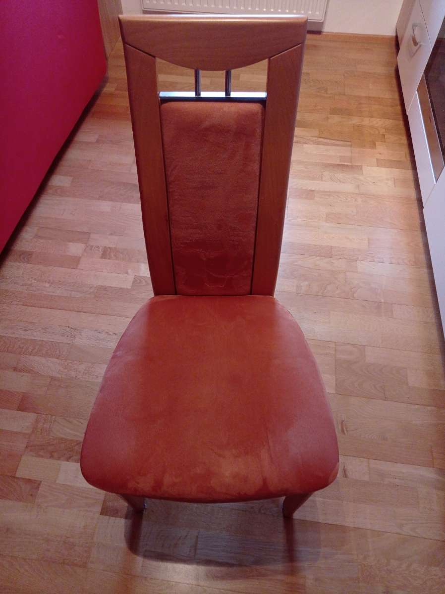 Ich schenke 6 Holzsessel mit Textilüberzug auf der Rückenlehne und am Sitzpolster her, da ich neue Sessel bekommen habe. Die Sessel haben nichts, jedoch sind die Platten auf denen die Sitzpölster liegen teilweise durchgebrochen. Die Sessel sind 15 Jahre...