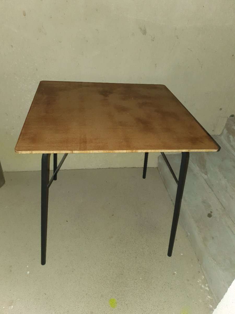Tisch zu verschenken. Masse 80×80cm, Höhe 77cm Spanplatte abgeschliffen und geölt. Füße aus Metall (können zum Transport abmontiert werden).