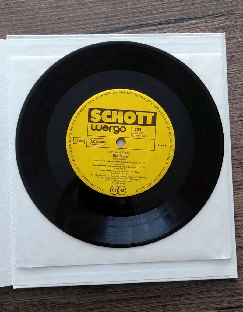 "Die Flöte - Grundzüge ihrer Entwicklung von der Urgeschichte bis zur Gegenwart" (Raymond Meylan) Schott Verlag inkl. Tonbeispiele (Schallplatte)
