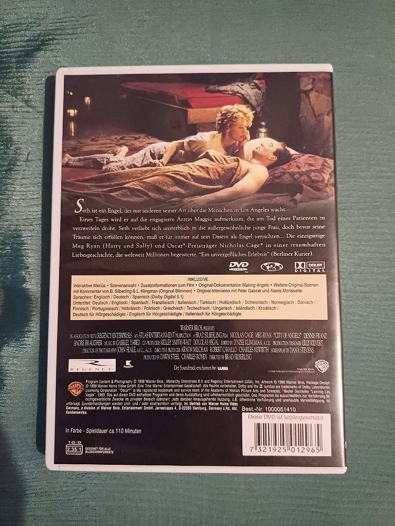 Löse große DVD Sammlung auf: Verschenke DVD Stadt der Engel - Nicolas Cage, Meg Ryan Sie glaubte nicht an Engel bis sie sich in einen verliebte. FSK ab 12 freigegeben gerne auch mit Versand einfach melden!