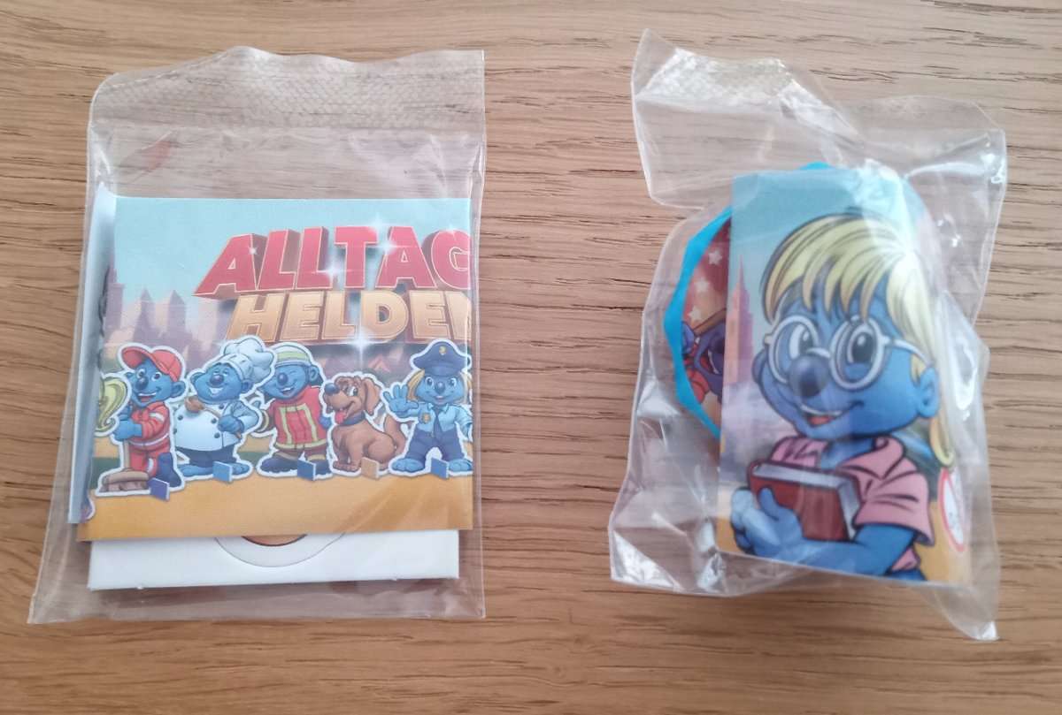 1 Sammelfigur und 1 Kreisel aus der Serie "Alltagshelden" der KOALA-Knusperkekse.