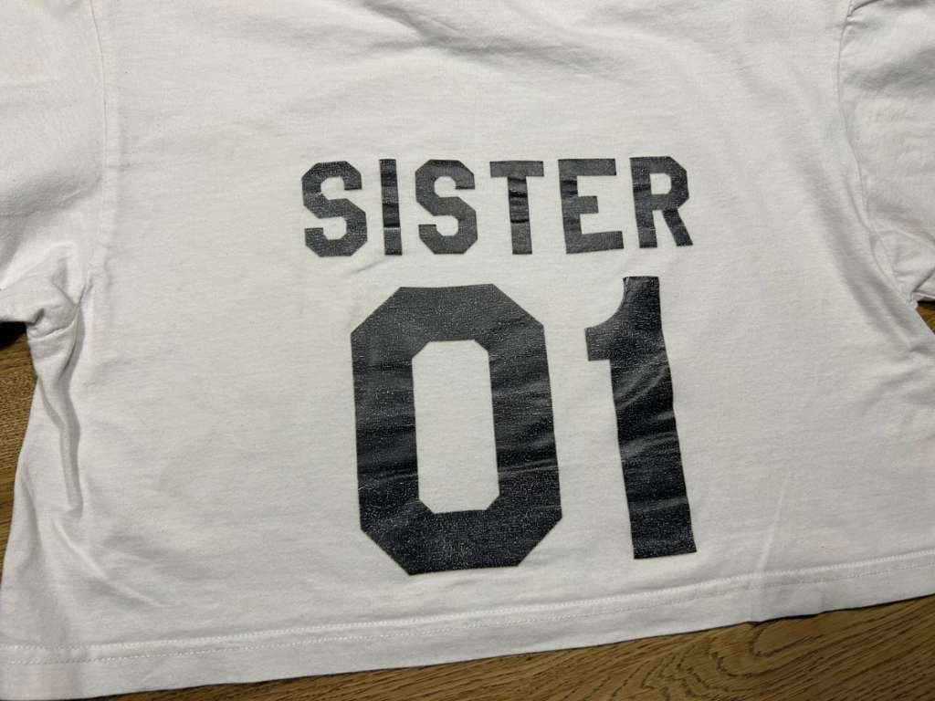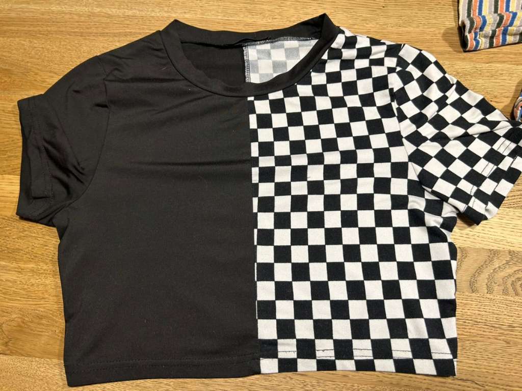 Verschenke für eine Freundin Alles mit Makel , siehe Bilder Gestreift mit mini Fleck Weißes mit Aufdruck mit mehreren Flecken Schwarz-weiß Karo mit Laufmasche ( Synthetikshirt) Alle kurz / cropped
