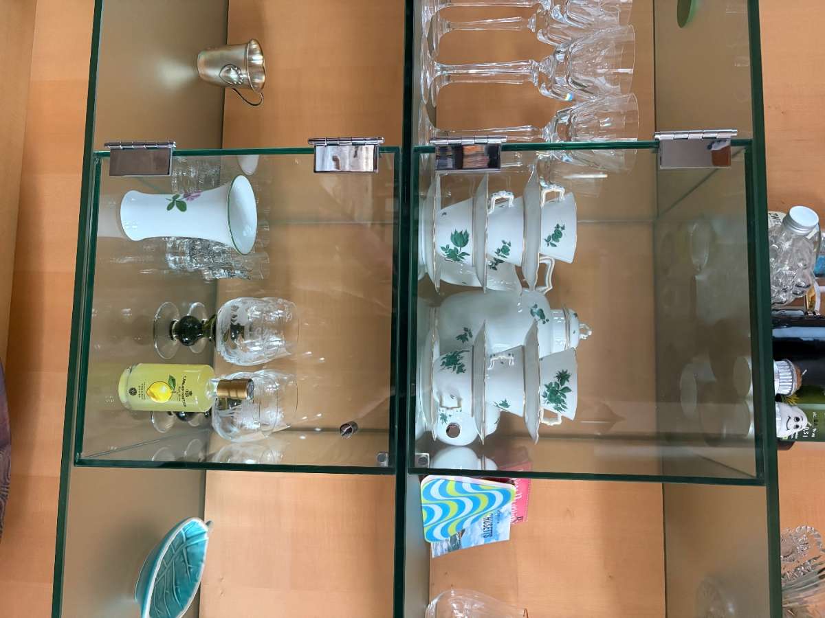 Wohnzimmerwand in Ahorn, Echtholz mit Glasboards