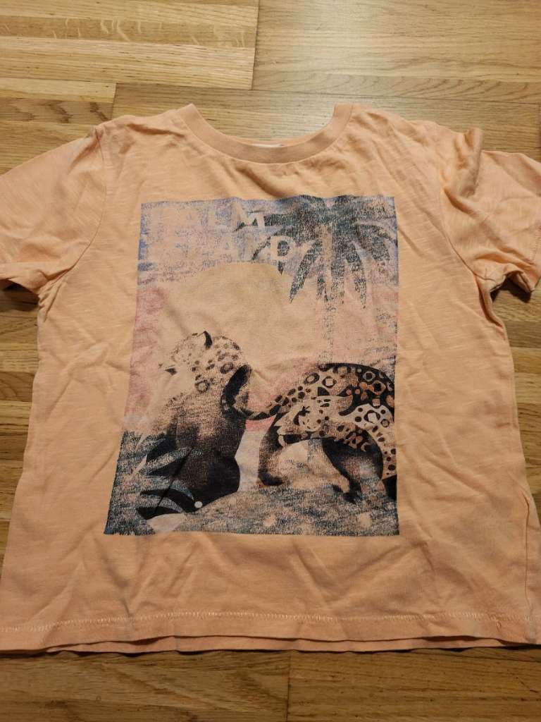 T-shirt in hellem Orange - mit Tiermotiv H&M x Dieter Braun Größe 110/116 Gebrauchter zustand, keine Löcher oder Flecken - nur das Motiv ist schon etwas weg. Da zu verschenken, nur selbstabholung. Gerne auch mit meinen anderen Anzeigen kombinieren...