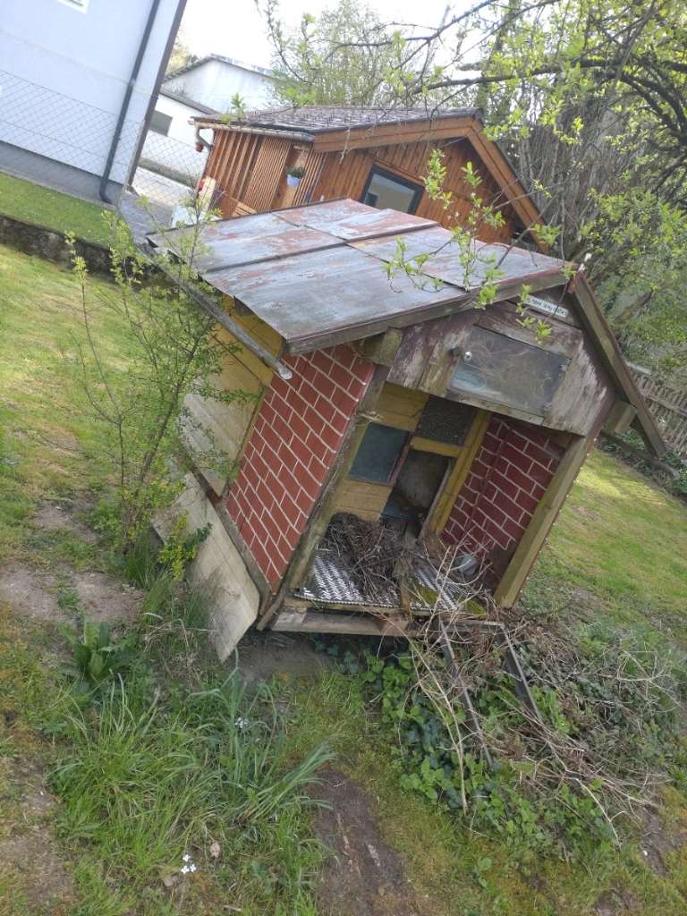 Massiver Hasen-, Hühner-, Entenstall. Der Stall ist winterfest (Isolierglasscheibe, Styropordämmung). Der innerste Korpus besteht aus Metall (Basis war eine große Werkzeugkistel und bietet daher auch Schutz vor Marder etc. Abmessungen (am Dachstuhl...