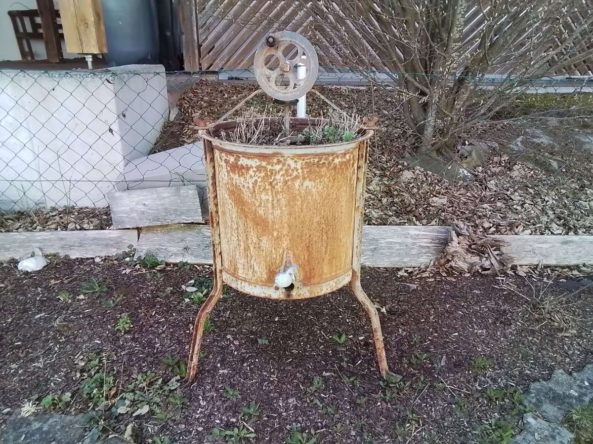 Alte honigschleuder Innen winterhart bepflanzt Gegen selbstabholung zu verschenken