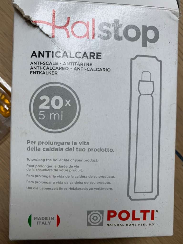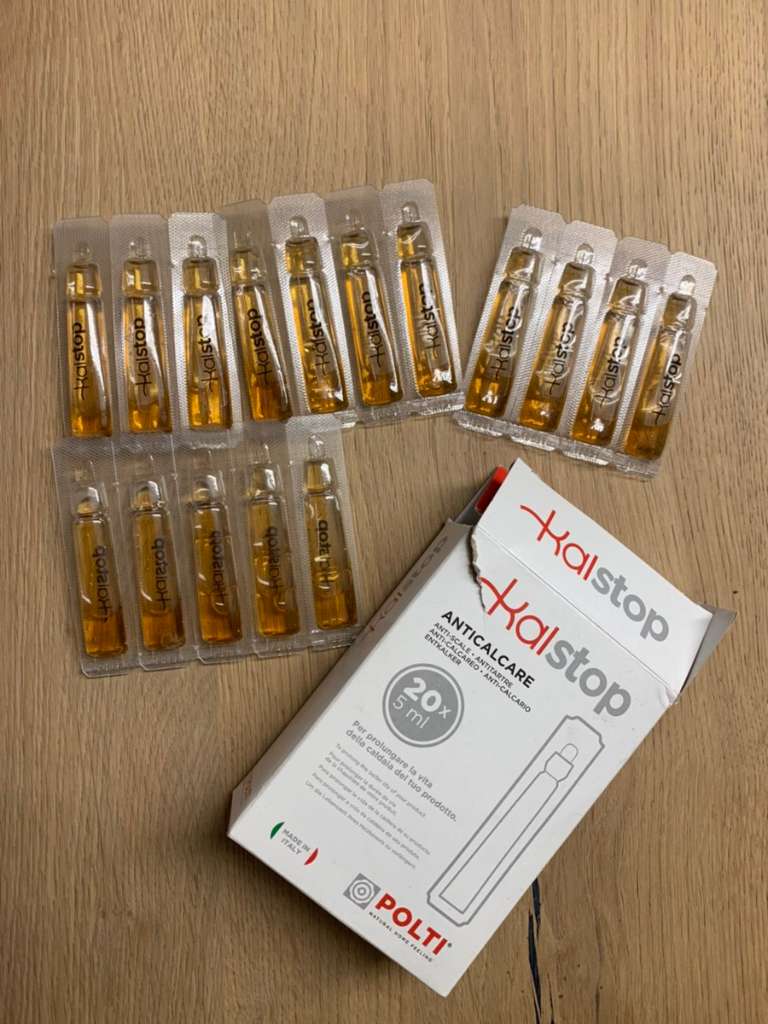 Wird nicht mehr gebraucht da bei unserer Dampfbügelstation das nicht verwendet werden darf - hatte vorher eine normale Dampfbügelstation und da hab ich 1 Ampulle auf einen 5 Liter Kanister gegeben u somit das schnelle verkalken verhindert Versand um 3...
