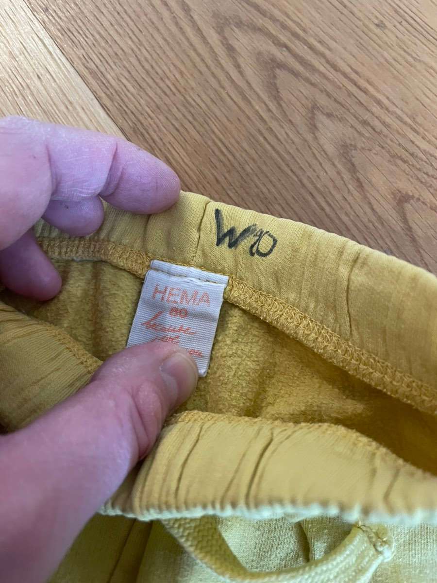 Stoffhose in gelb für Mädchen u Buben, hat einen kleinen Fleck (siehe Foto), darum zu verschenken