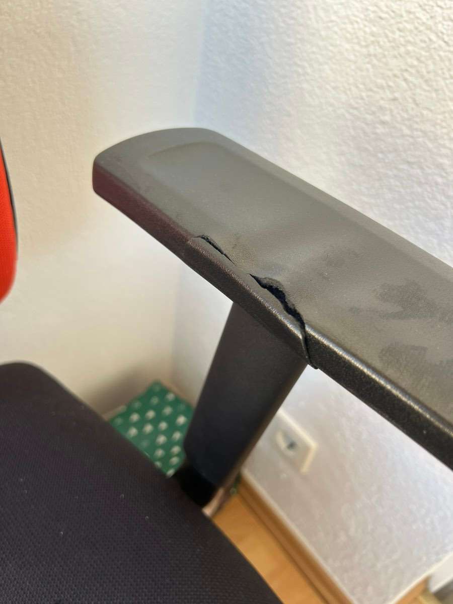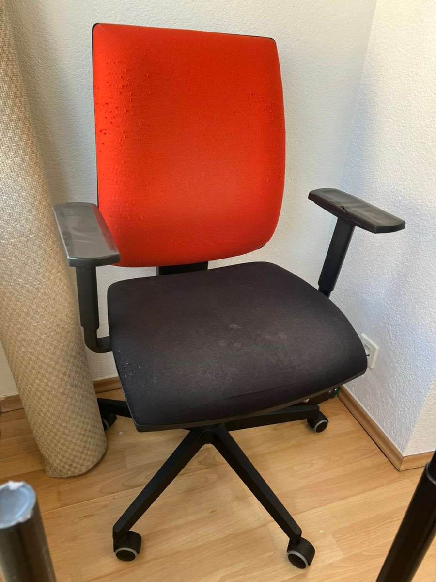 Ich verschenke einen gut erhaltenen Schreibtischstuhl. Der Stuhl ist bequem und voll funktionsfähig – ideal fürs Homeoffice oder Studium. Details: Farbe: Orange Zustand: gebraucht, aber in gutem Zustand (einziger Mangel siehe Foto an der Armlehne)...