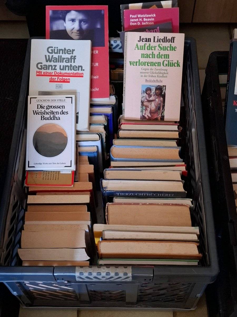 Für Flohmarktfahrer und Bücherwürmer. Verschenke zwei volle Kisten mit Büchern. Die Kisten werden nicht mitgegeben!!! Daher bitte selber leere Kisten mitbringen. Kein Versand. Nur Abholung. Anfragen nur mit Telefonummer.