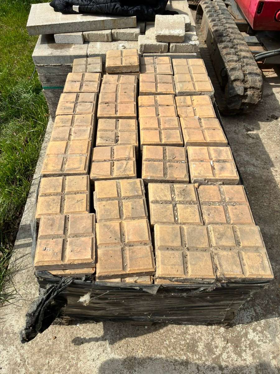 17cmx17cm und 4,5 cm stark, mit Fuge ca. 10m2, mit Hänger zufahrbar, Stapler eventuell verfügbar kann ich aber nicht versprechen!