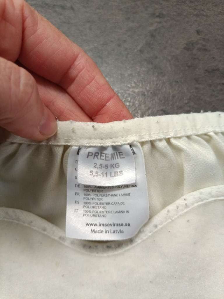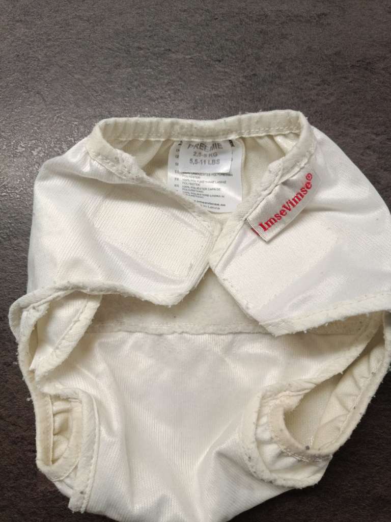 3 Überhosen gr. 0 für newborns 1x imsevimse Premiere 2,5-5 kg 1x totsbots gr. 0 1x planetwise gr. 1 Die planetwise ist verfärbt vom Lagern, Versuche das noch raus zu bekommen.